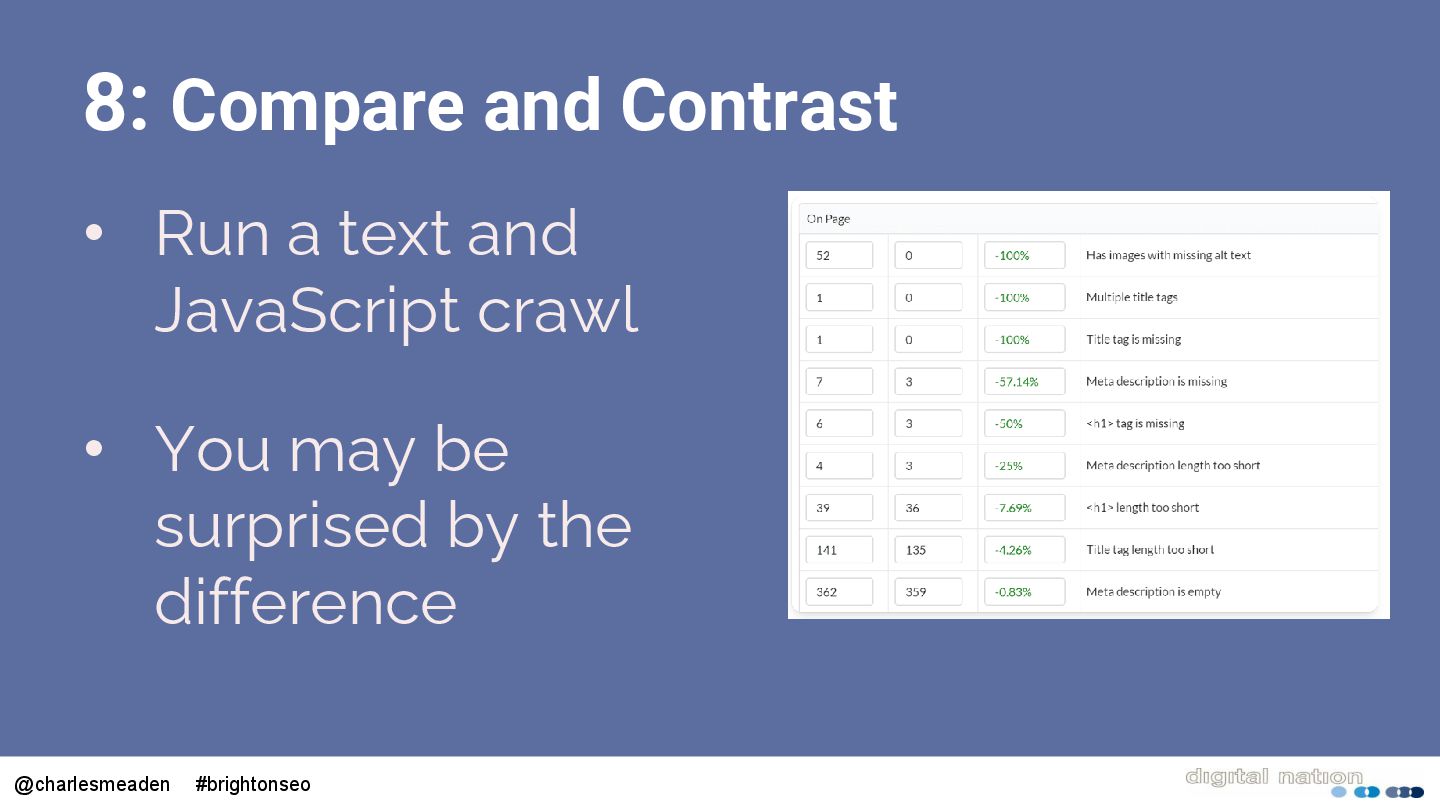 9. @charlesmeaden #brightonseo 8: Compare and Contrast • Run a text