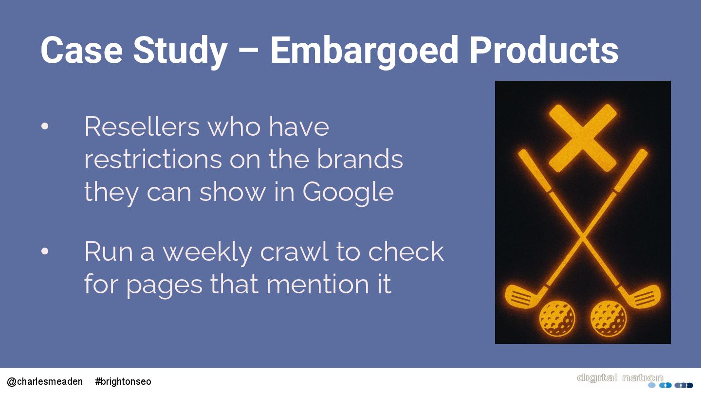 12. @charlesmeaden #brightonseo Case Study – Embargoed Products • Resellers who
