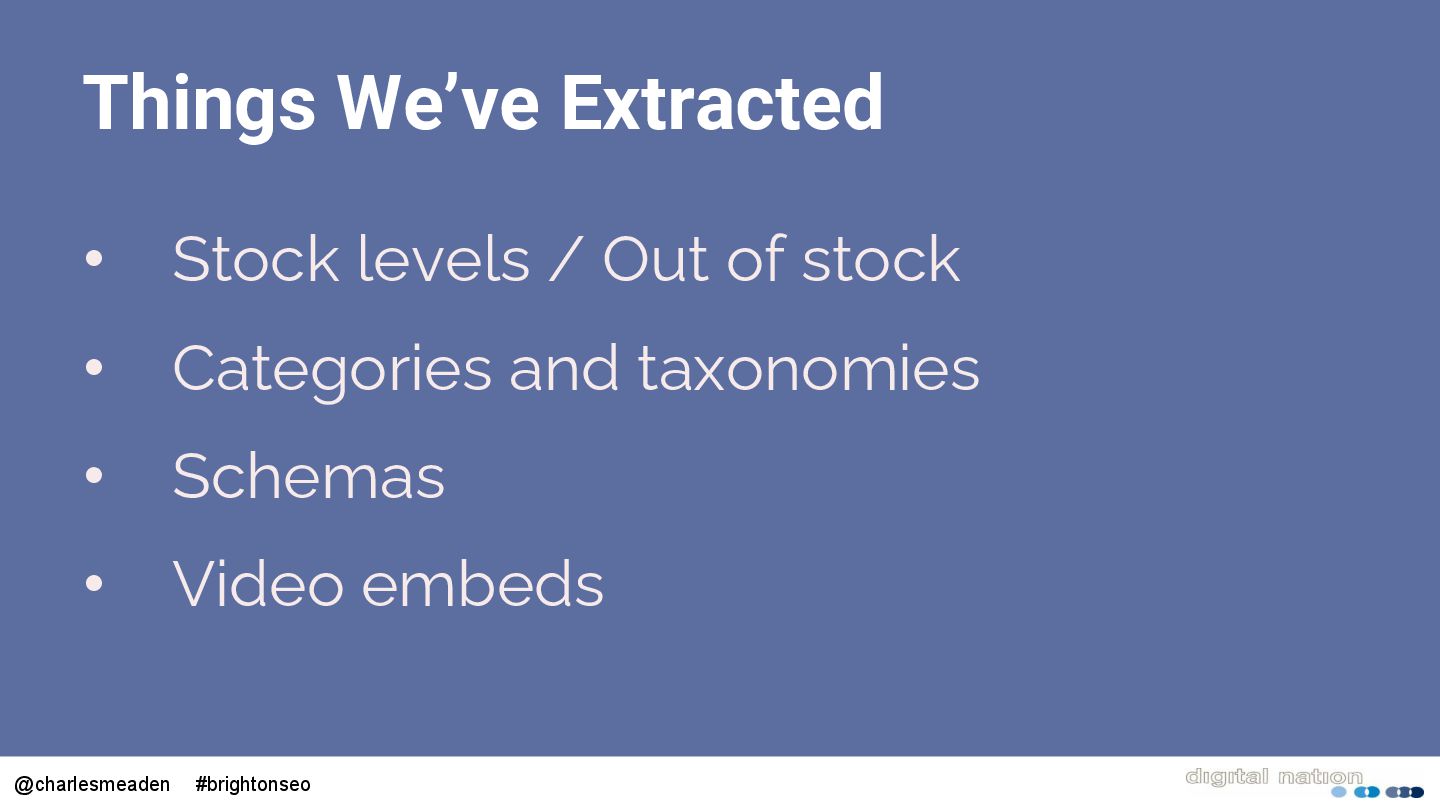 13. @charlesmeaden #brightonseo Things We’ve Extracted • Stock levels / Out