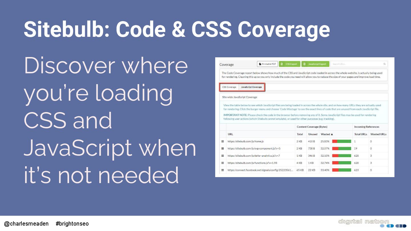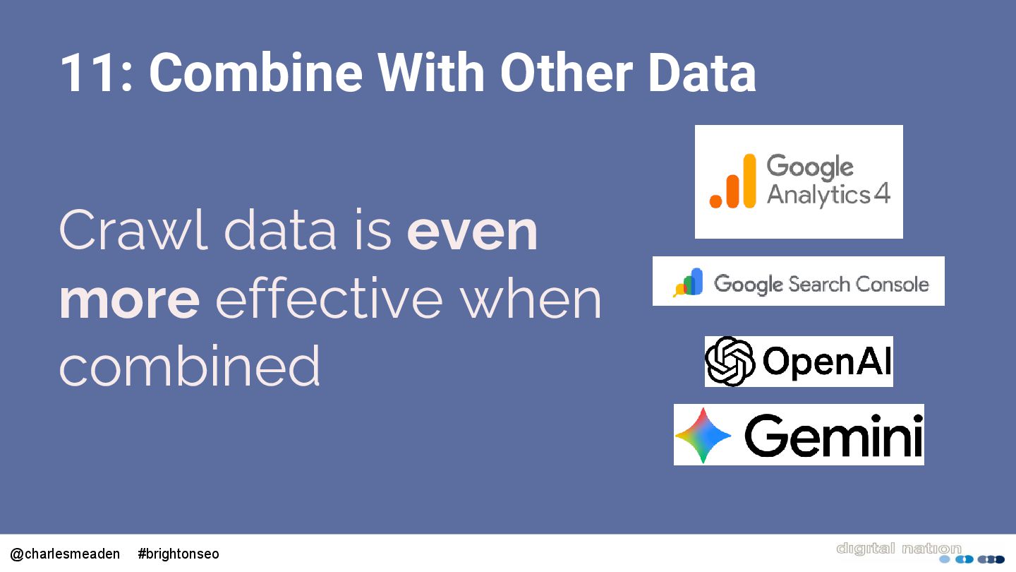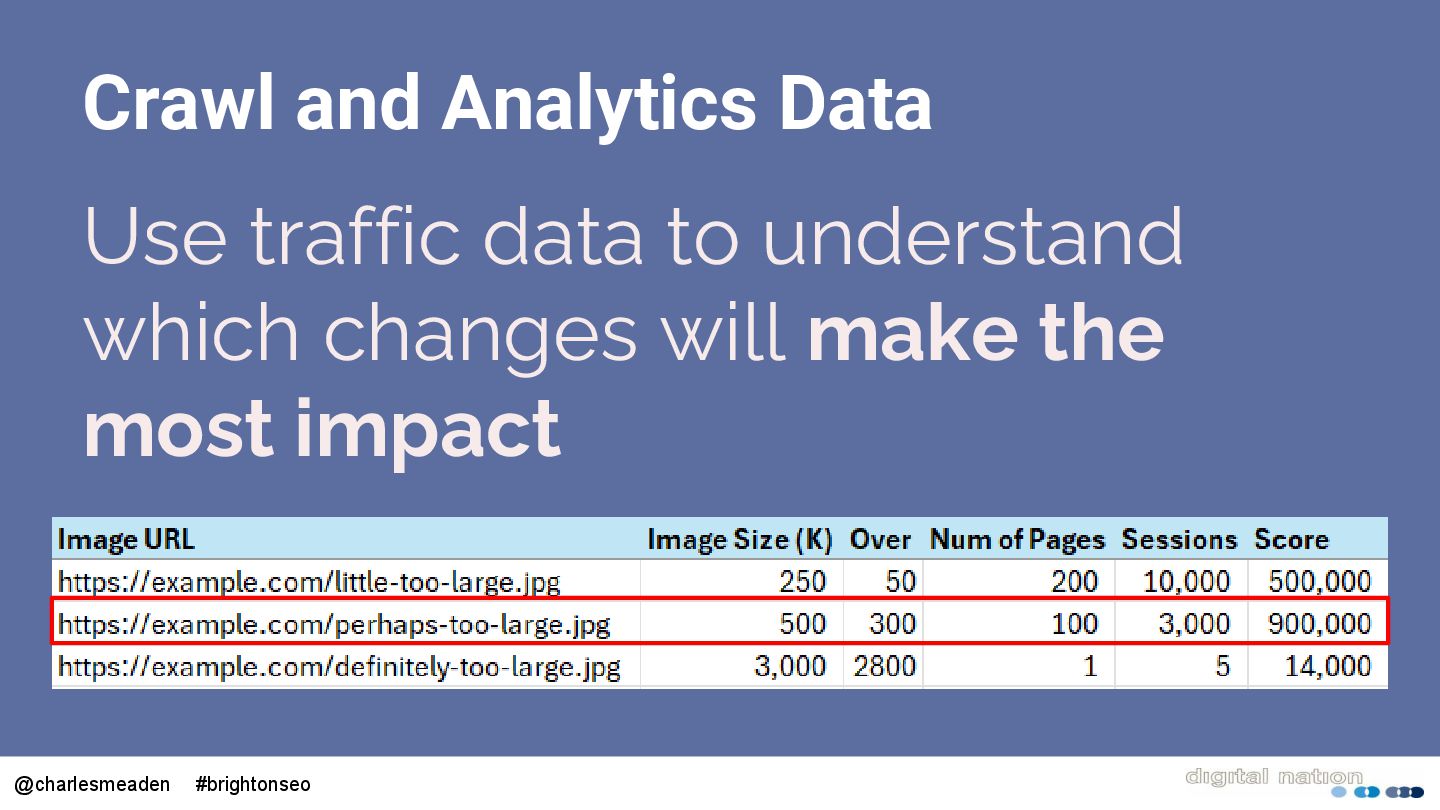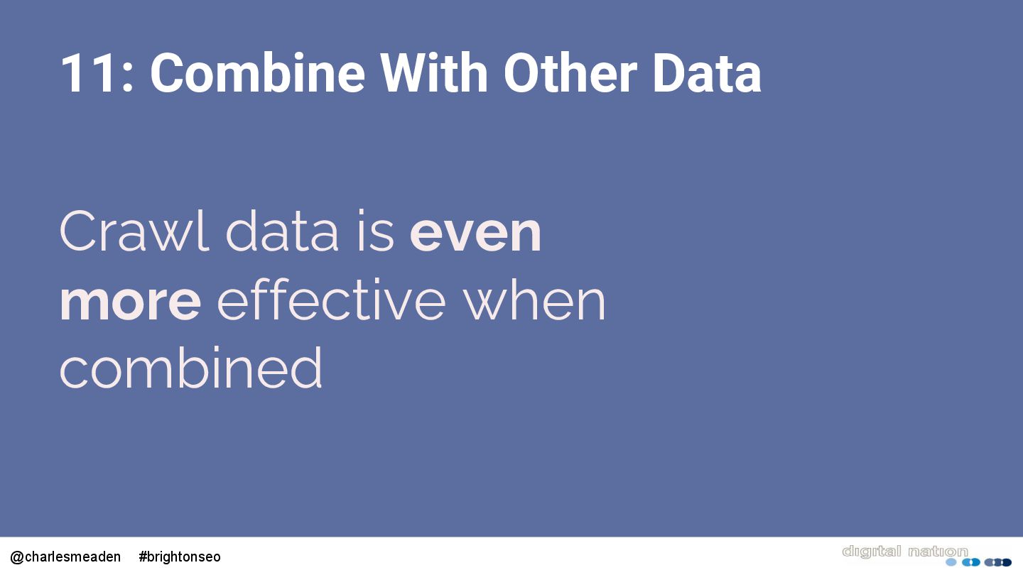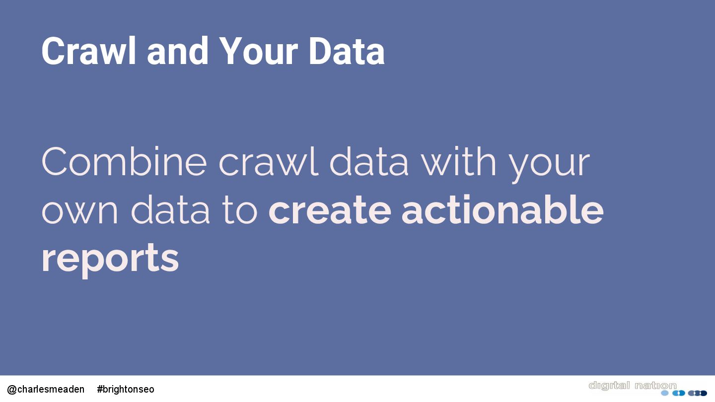 14. @charlesmeaden #brightonseo Crawl and Analytics Data Use traffic data to