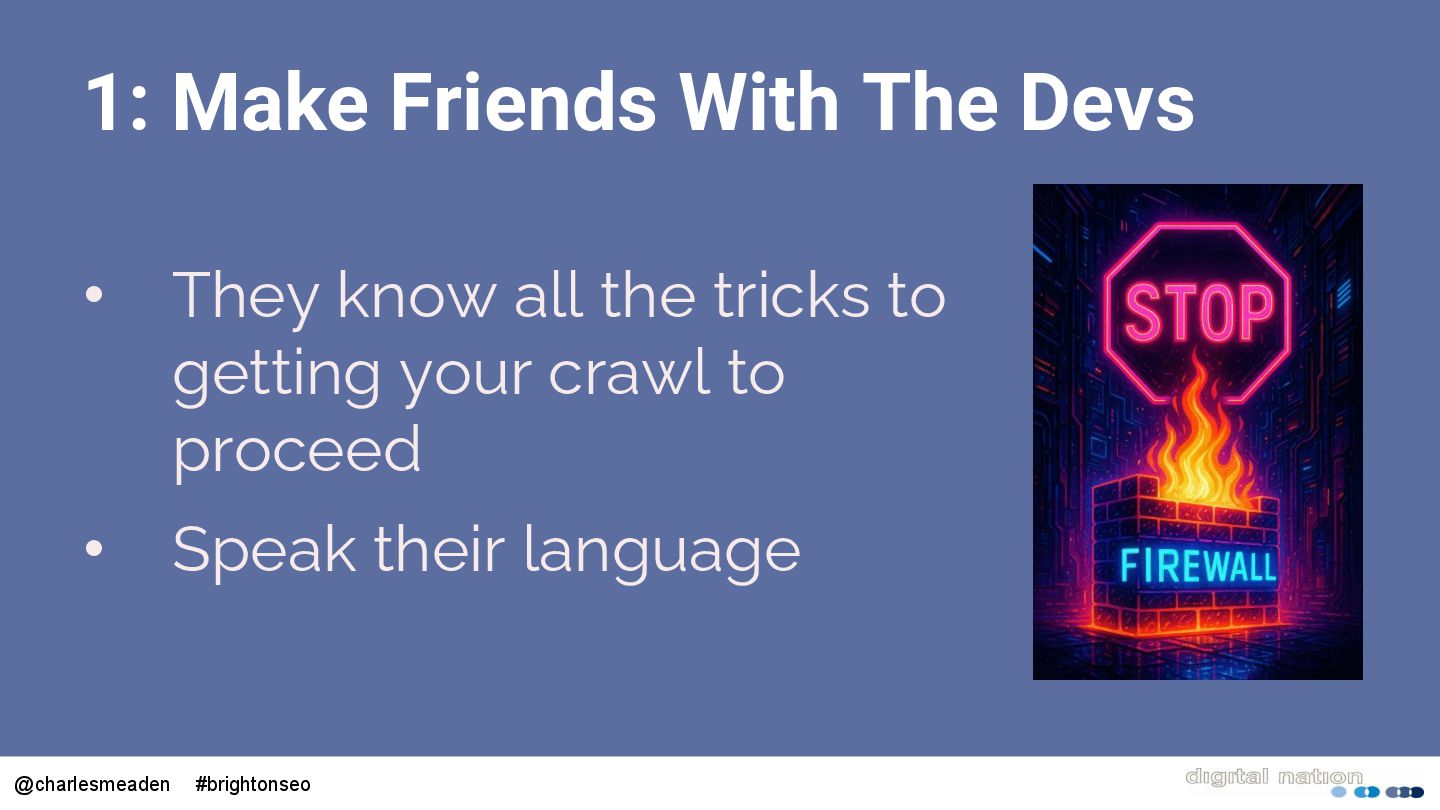 2. @charlesmeaden #brightonseo 1: Make Friends With The Devs • They