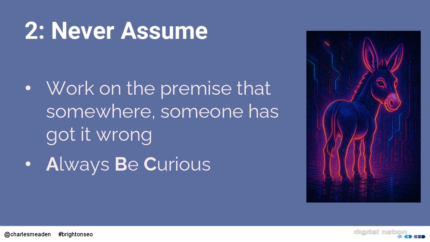 3. @charlesmeaden #brightonseo 2: Never Assume • Work on the premise