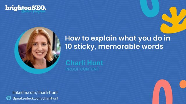 abstract because it’s easy and everyone else does it (including AI) • But *: ◦ It’s more likely to be believed if it’s concrete ◦ It’s more likely to be remembered if it’s concrete ◦ It’s more likely to be understood if it’s concrete * Truth From Language and Truth From Fit: The Impact of Linguistic Concreteness and Level of Construal on Subjective Truth - Hansen & Wänke, Personality & Social Psychology Oct 2010 linkedin.com/charli-hunt #BrightonSEO