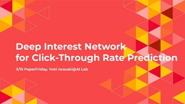 Deep Interest Network for Click-Through Rate Prediction 3/15 PaperFriday, Yuki