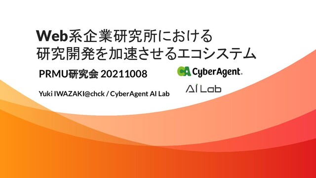 Web系企業研究所における 研究開発を加速させるエコシステム PRMU研究会 20211008 Yuki IWAZAKI@chck / CyberAgent AI Lab
