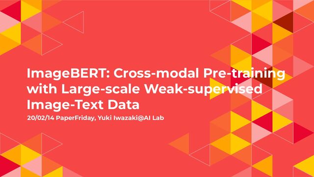 ◂ An old man swimming... -> An old man [MASK]... ◂ 10%...randomなtokenにreplace ◂ An old man swimming... -> An old man old ◂ 10%...not replace ◂ my cat is cute -> my cat is cute ◂ 周辺のtokensから変換前のtokenを予測させて(穴埋め問題を解か せて)image|textの相互作用と言語表現を獲得 55