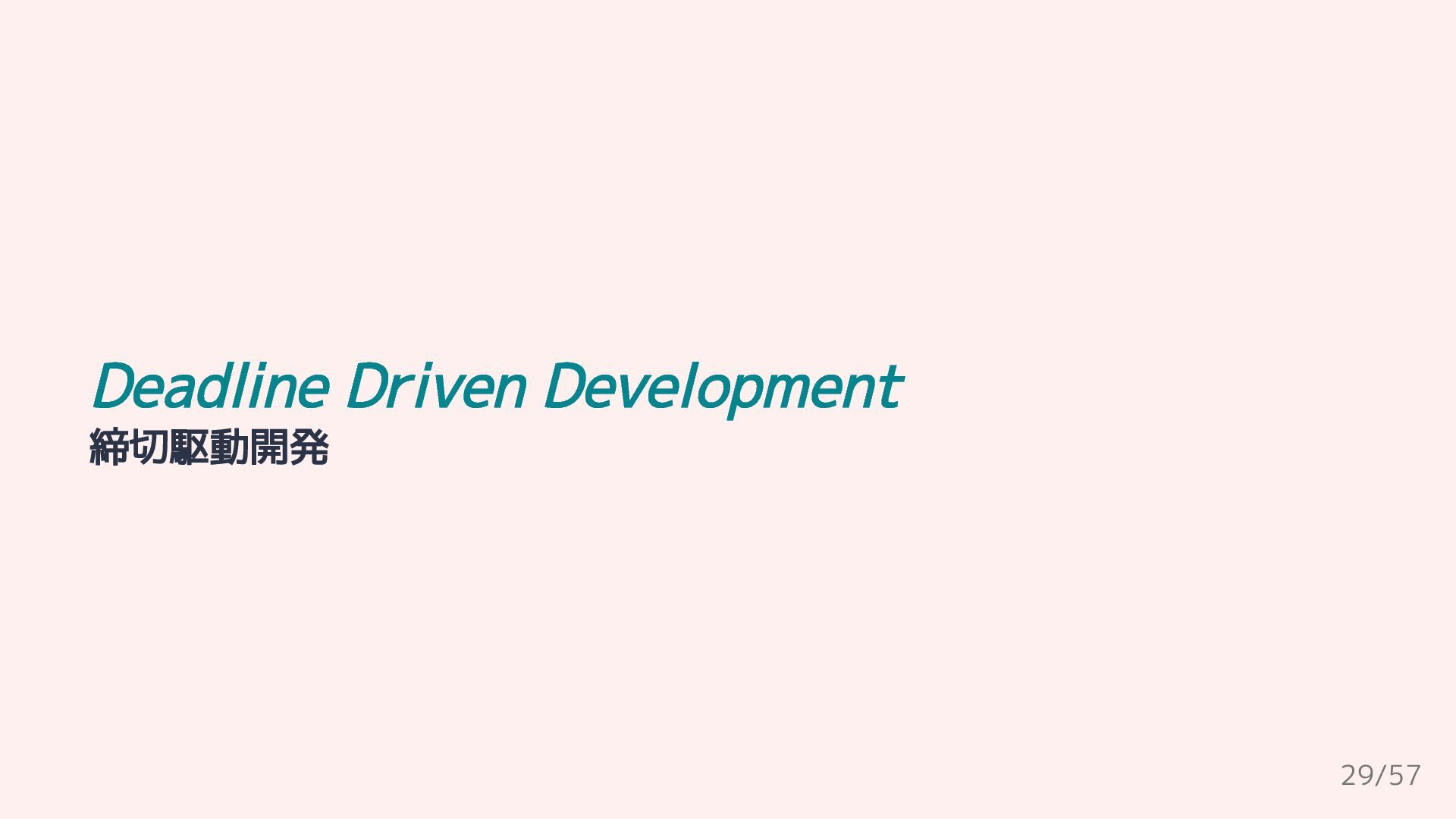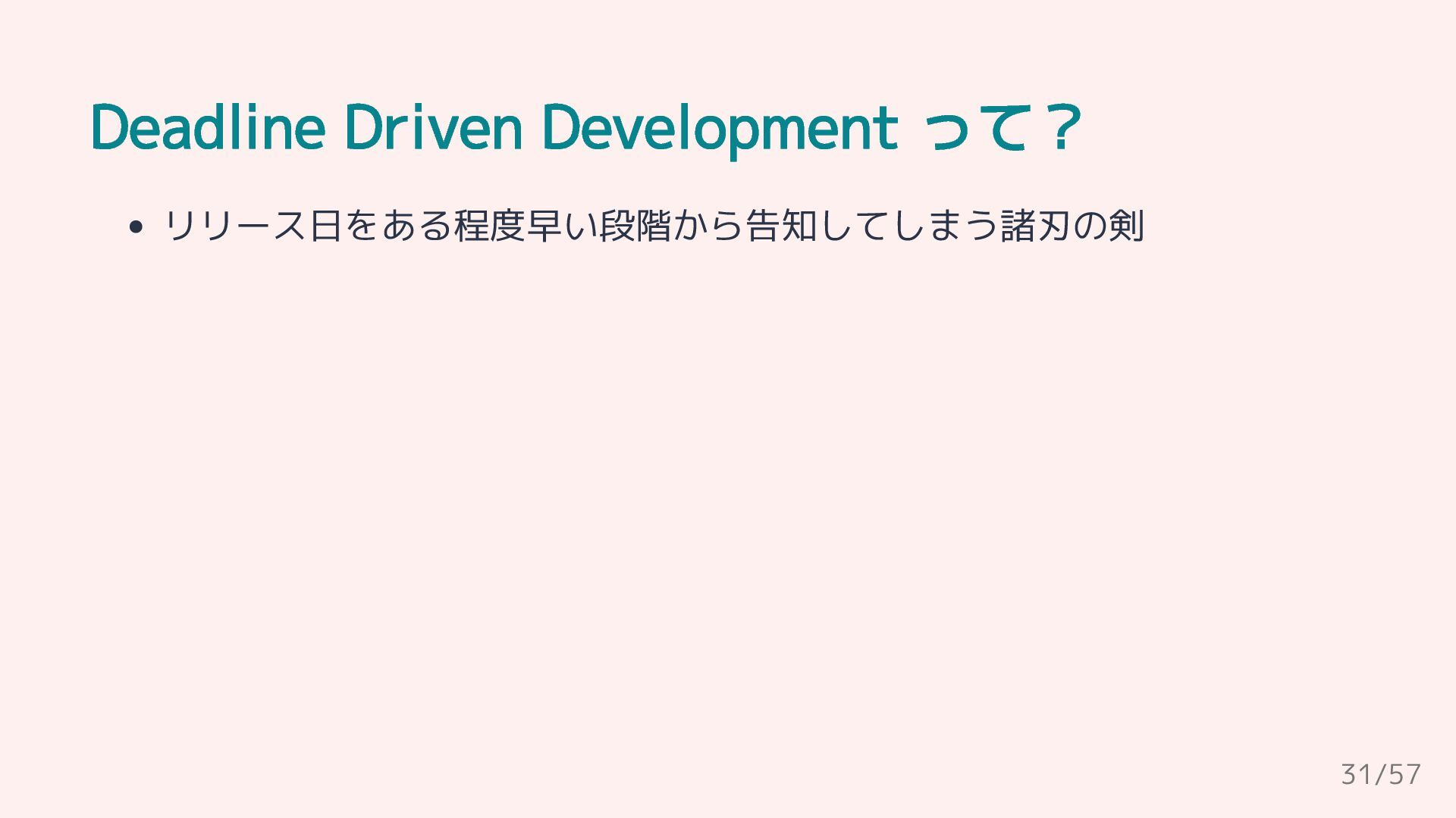 Deadline Driven Development って? リリース日をある程度早い段階から告知してしまう諸刃の剣 31/57