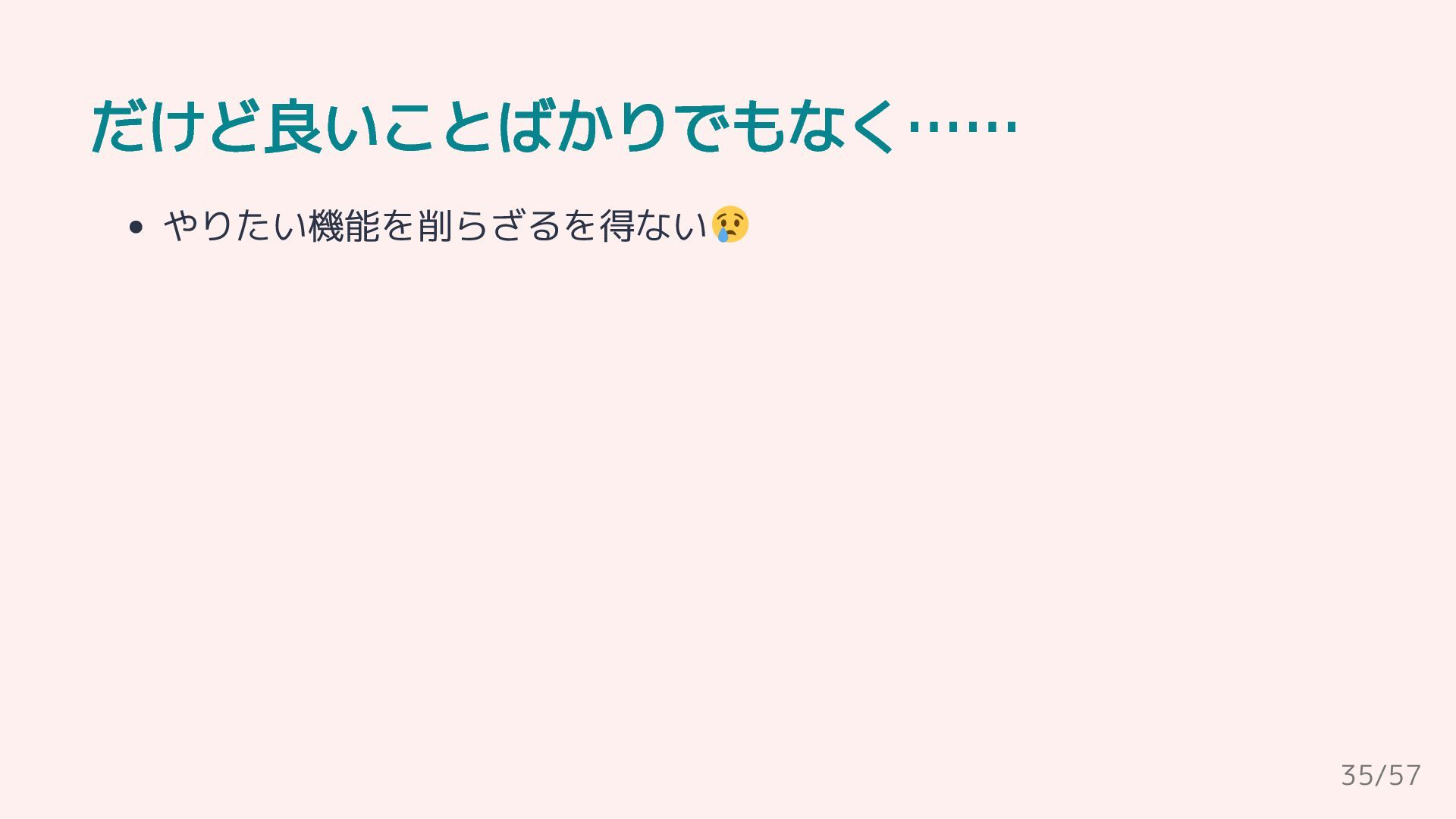 だけど良いことばかりでもなく…… やりたい機能を削らざるを得ない 35/57