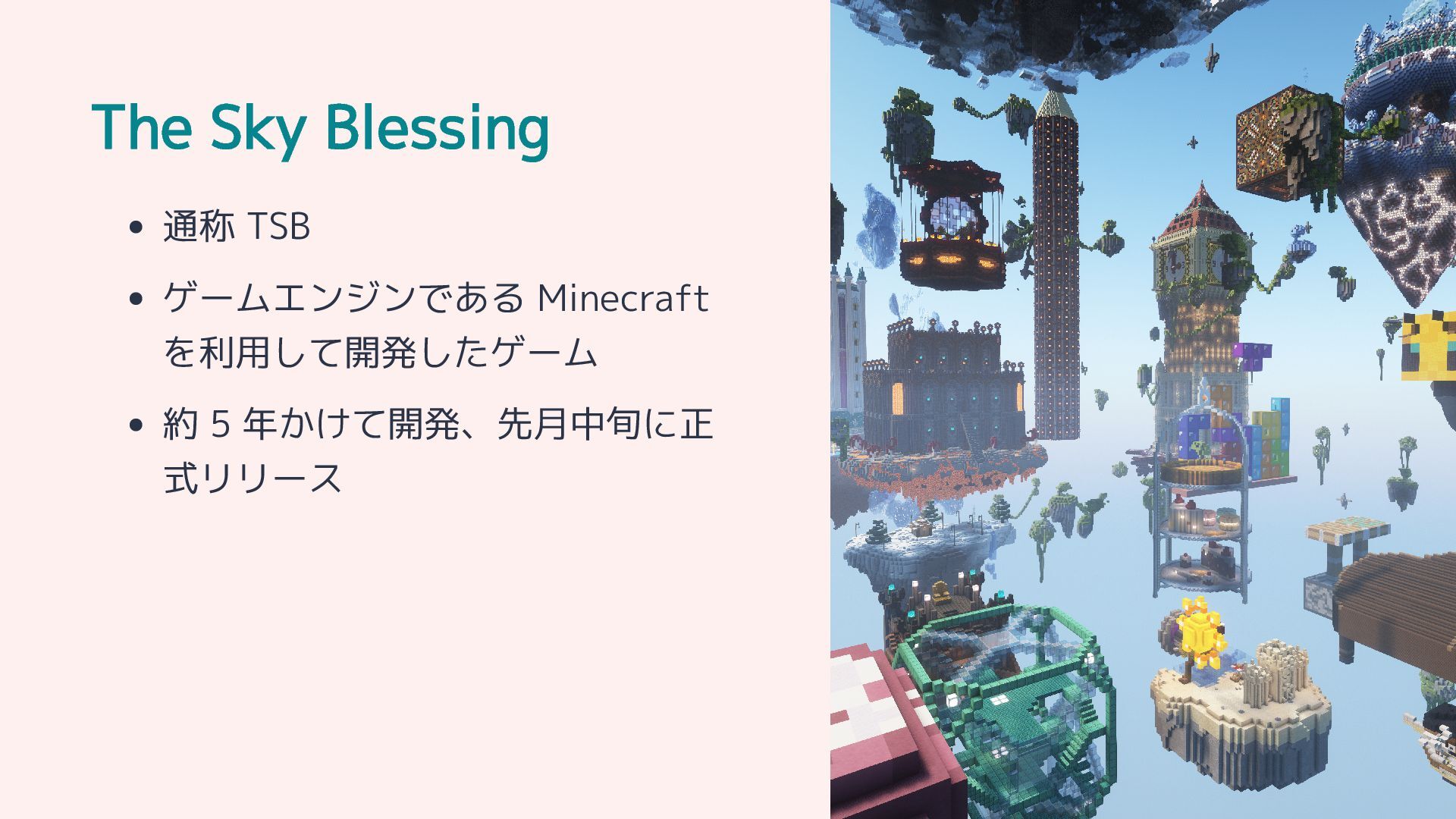 The Sky Blessing 通称 TSB ゲームエンジンである Minecraft を利用して開発したゲーム 約 5