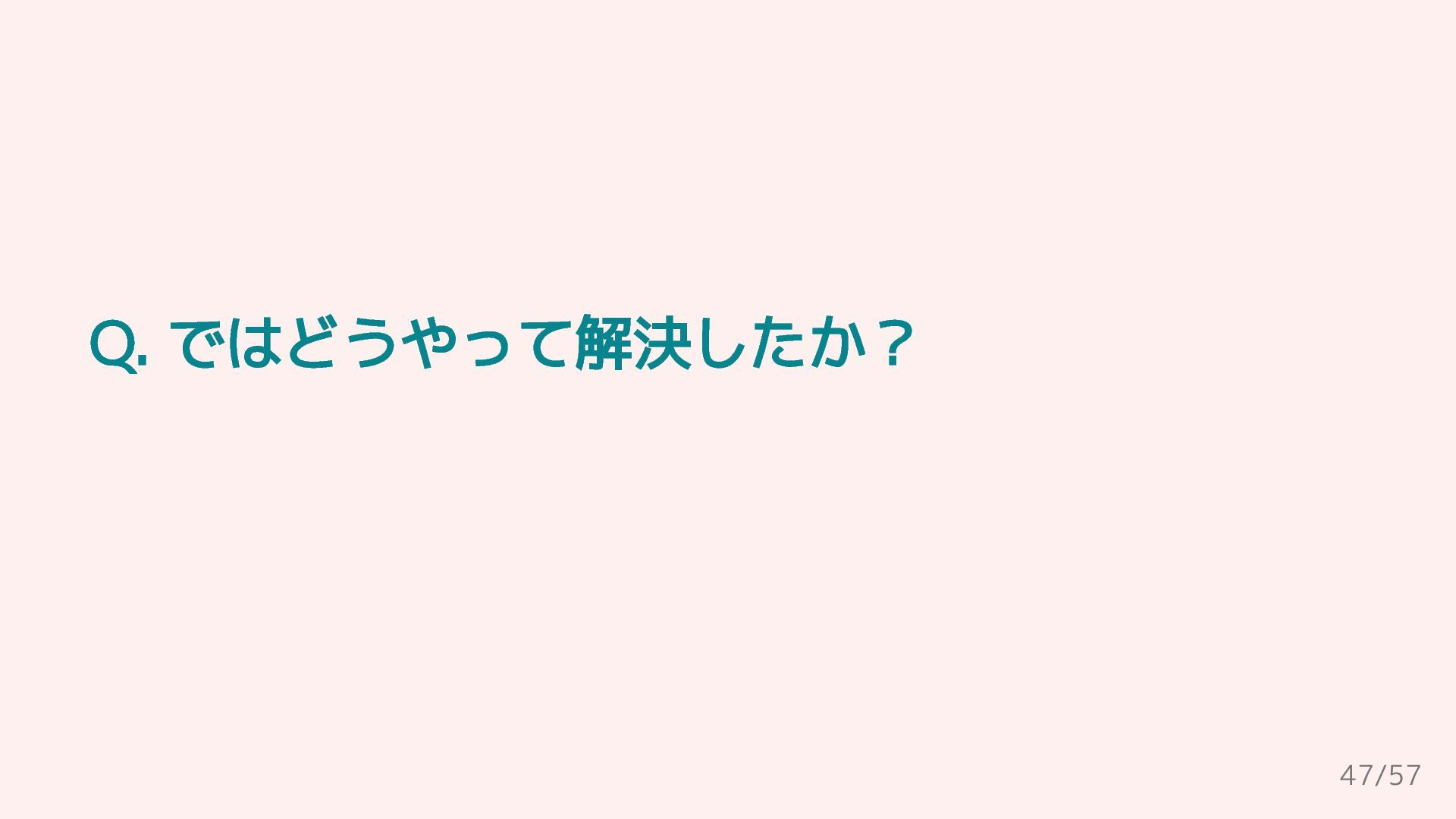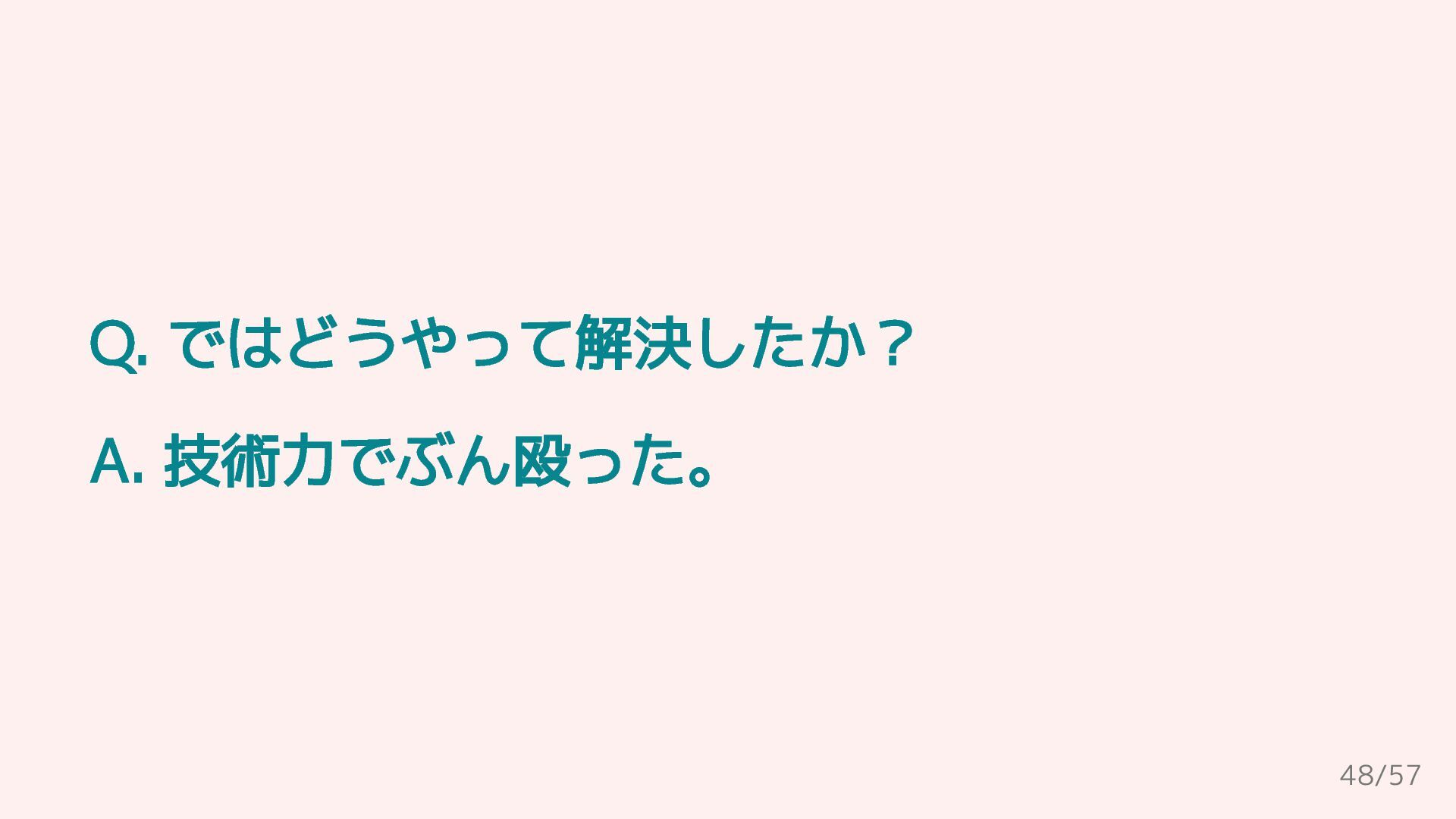 Q. ではどうやって解決したか? A. 技術力でぶん殴った。 48/57