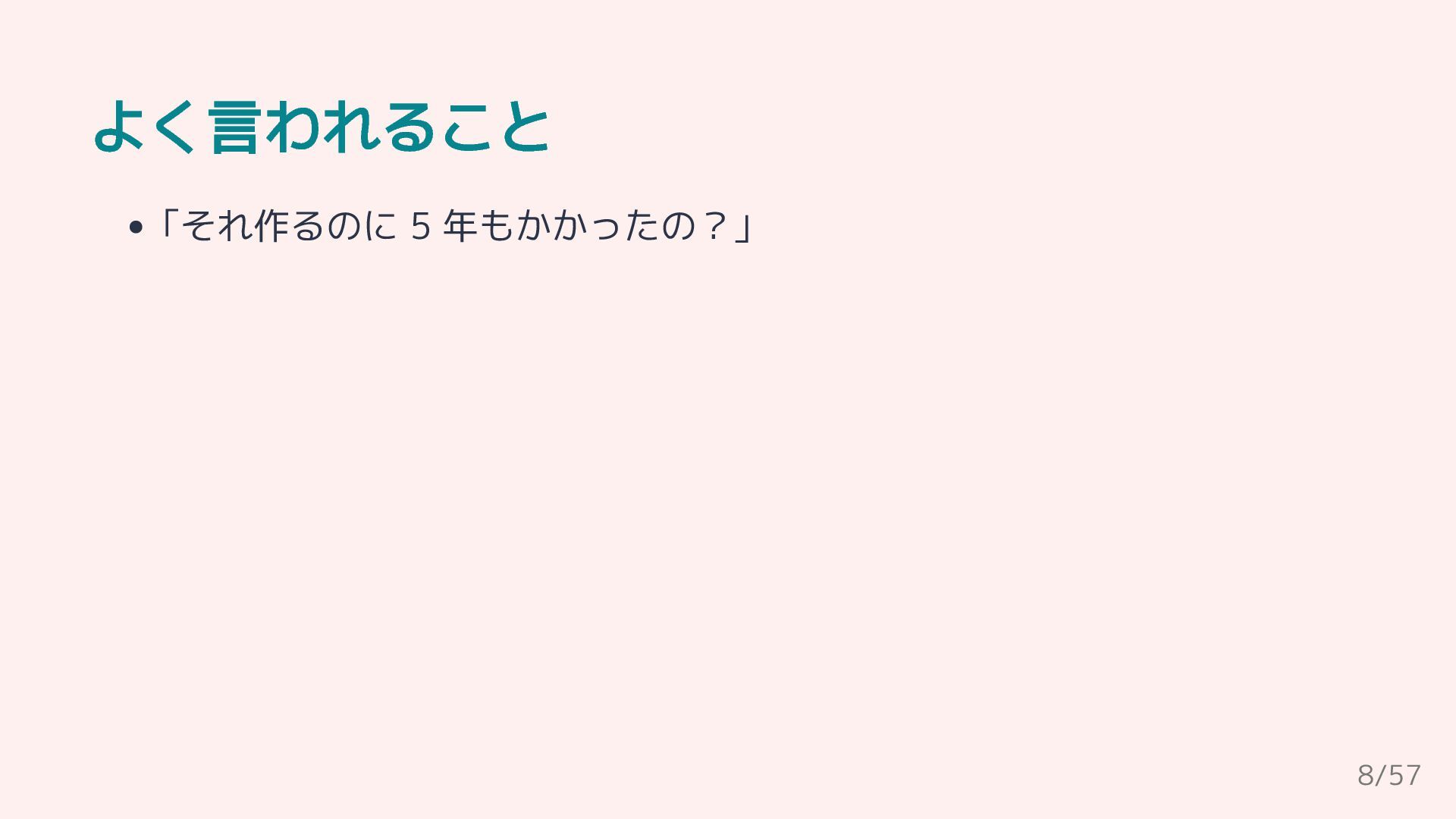 よく言われること 「それ作るのに 5 年もかかったの?」 8/57