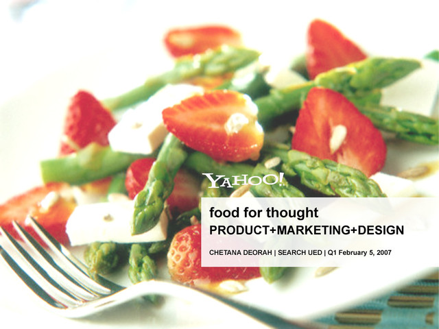 Product Marketing and Search User Experience Design recipe for success: Provide the most engaging end-to-end Customer Experience across all Yahoo! Search Products SEARCH PMD