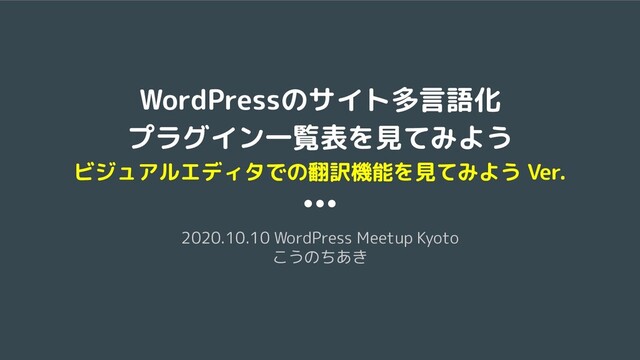 2020.10.10 オンライン開催の WordPress Meetup Kansai Kyoto にて、 WordPressのサイト多言語化 プラグイン一覧表を見てみよう、ビジュアルエディタでの翻訳機能を見てみよう Ver. についてお話ししました。