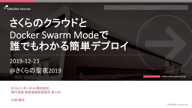 さくらのクラウドと Docker Swarm Modeで 誰でもわかる簡単デプロイ 2019-12-23 @さくらの聖夜2019 ©SAKURA internet Inc.