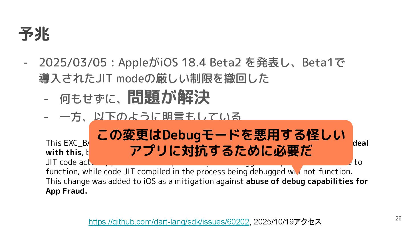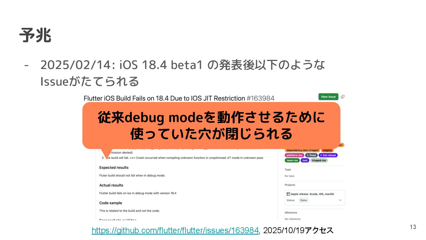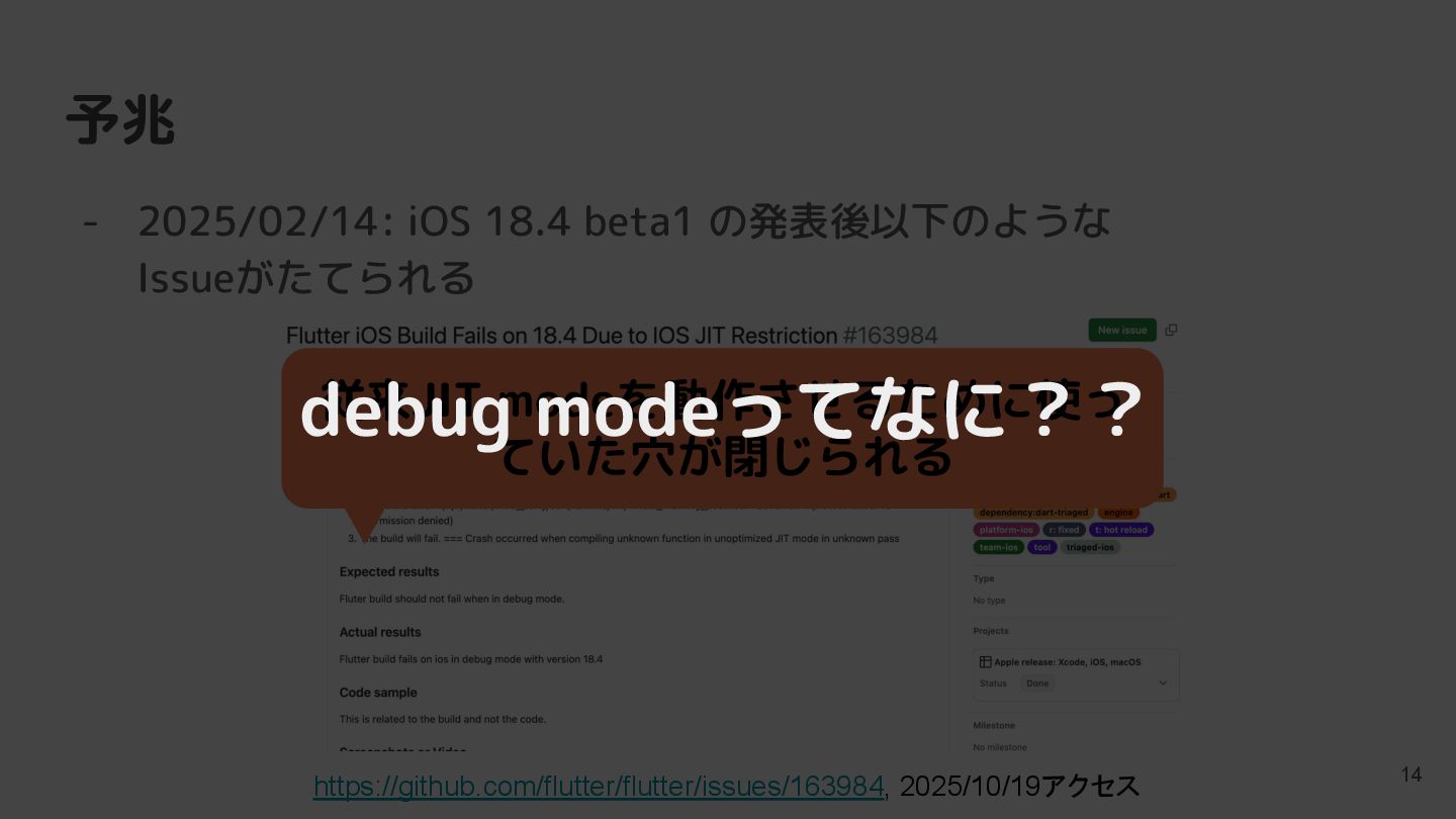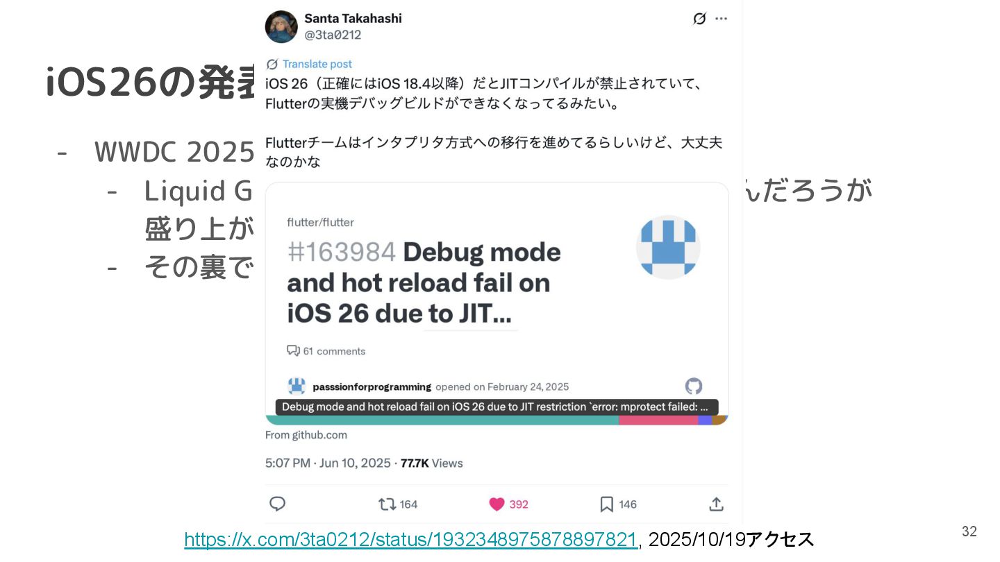 iOS26の発表直後、FlutterのHot reloadが実機では動作しない問題が発生し、アプリ開発者は窮地に立たされまさした。