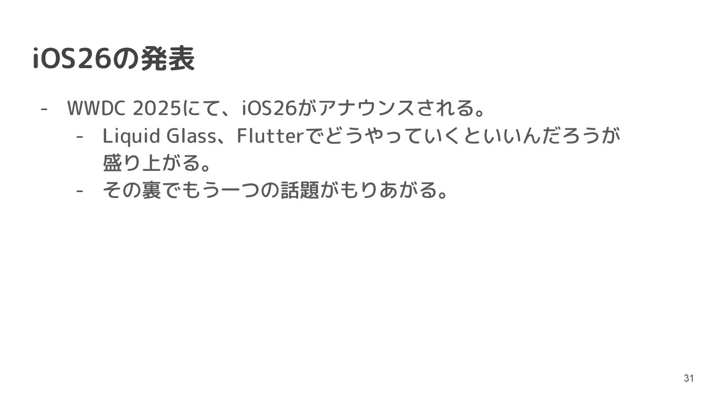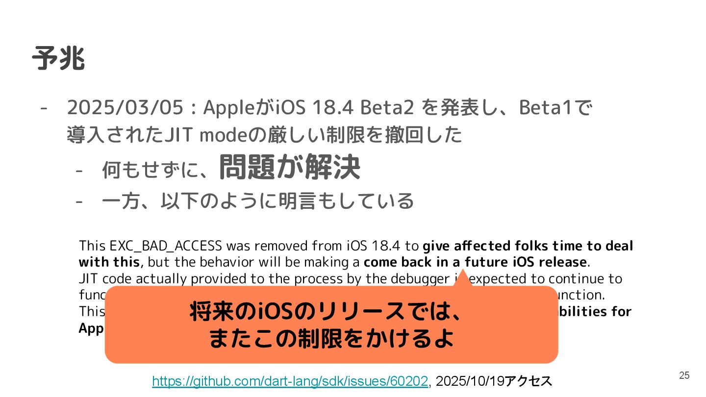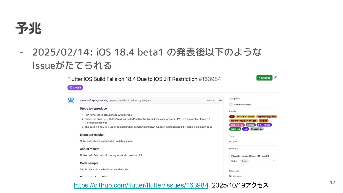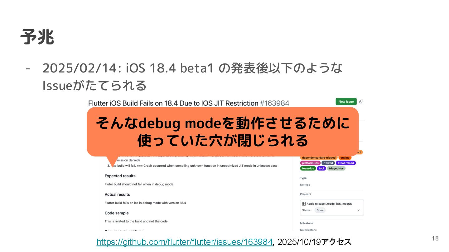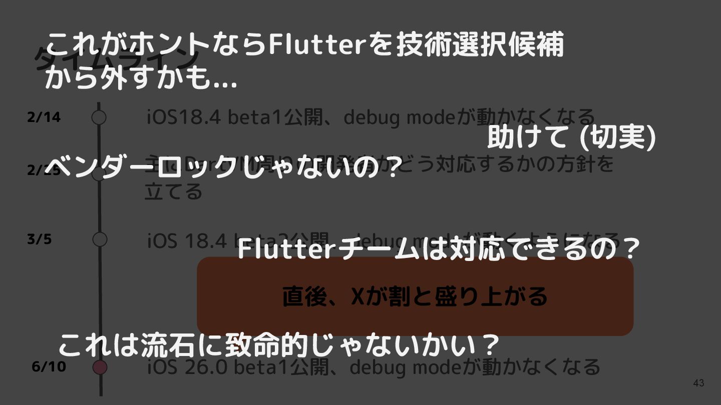 iOS26の発表直後、FlutterのHot reloadが実機では動作しない問題が発生し、アプリ開発者は窮地に立たされまさした。
