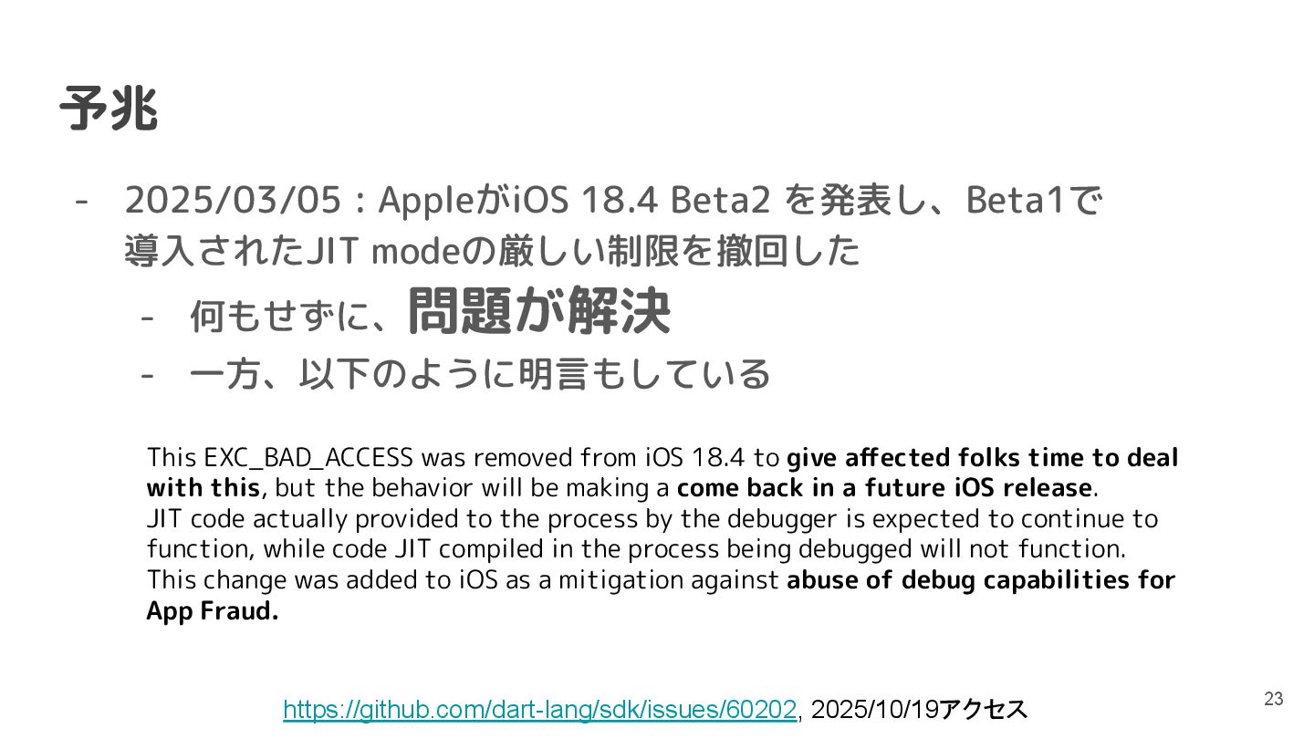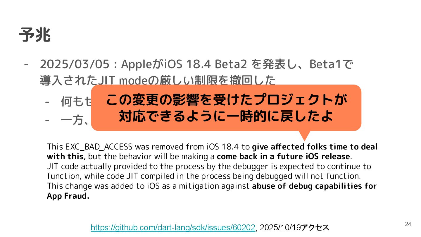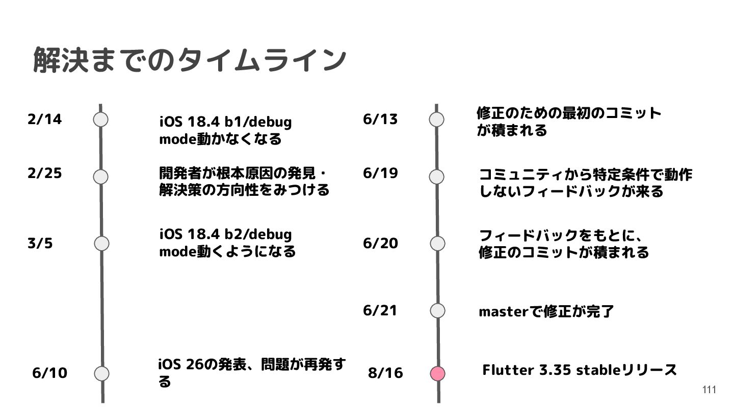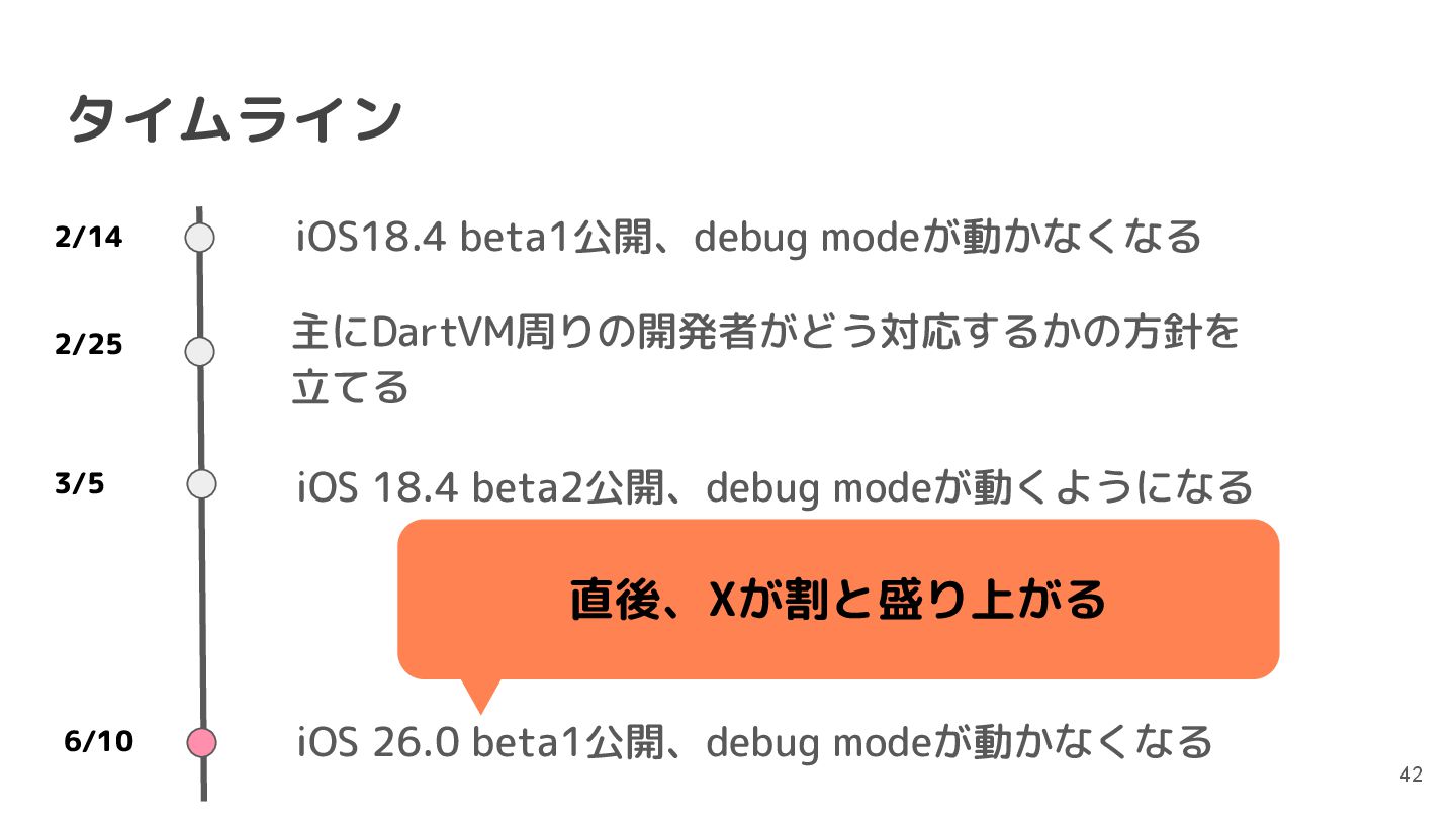 iOS26の発表直後、FlutterのHot reloadが実機では動作しない問題が発生し、アプリ開発者は窮地に立たされまさした。