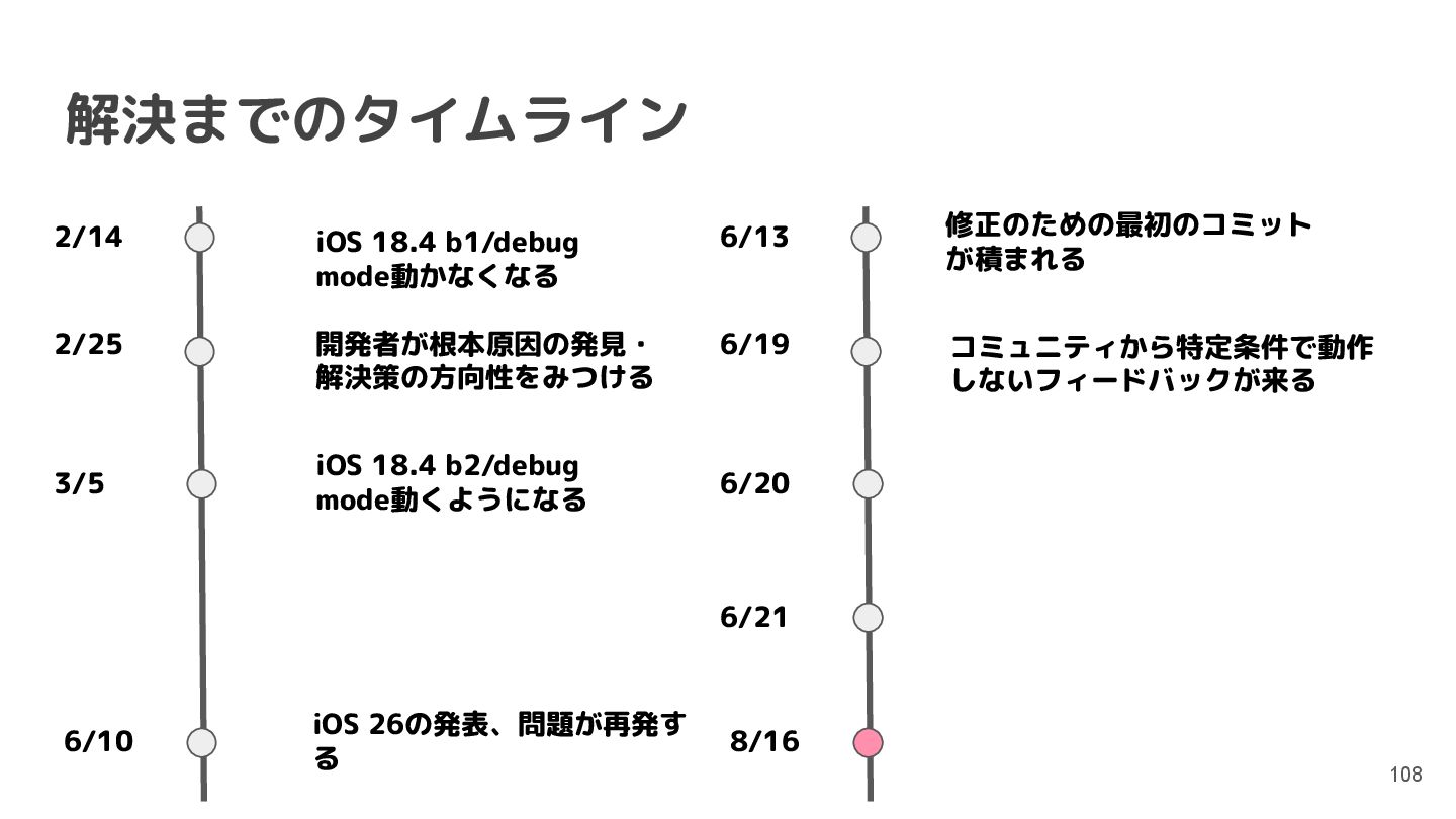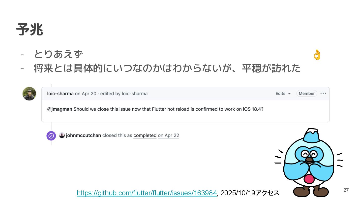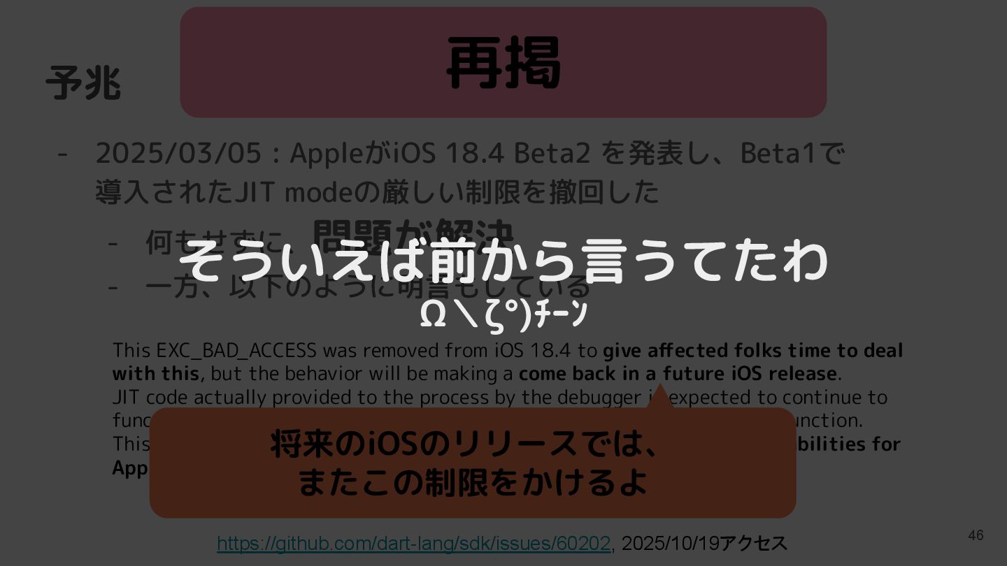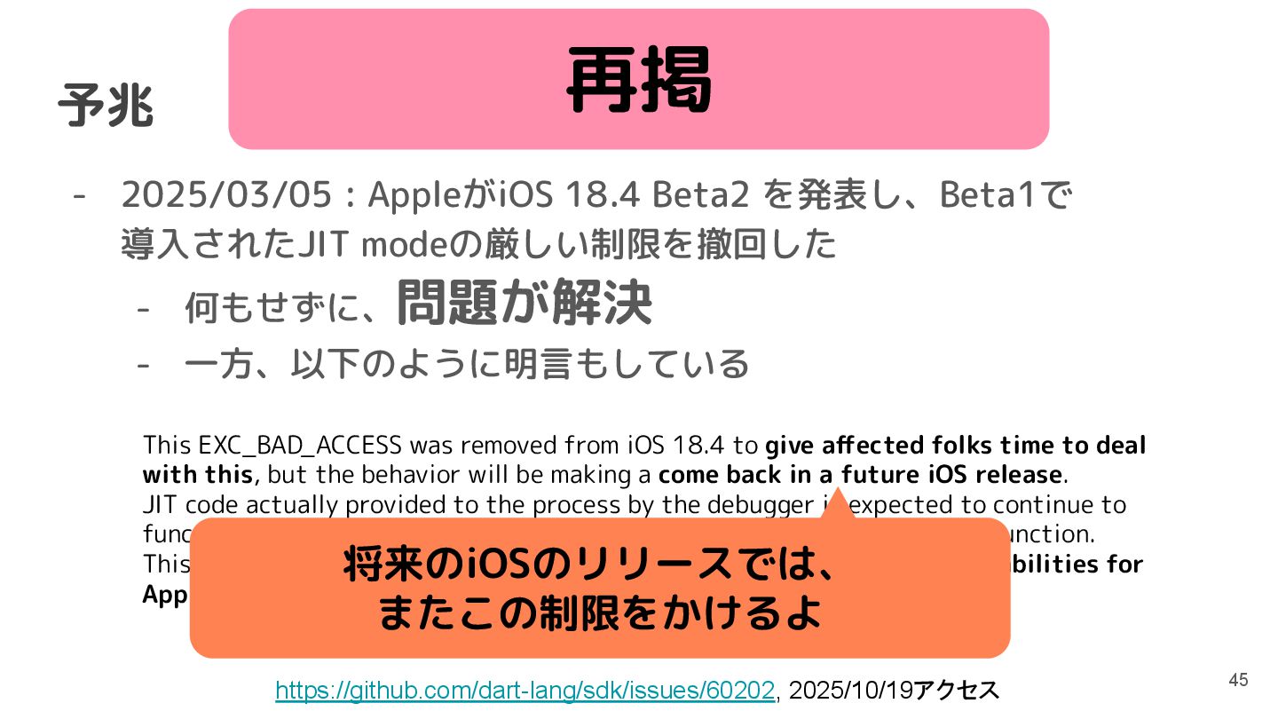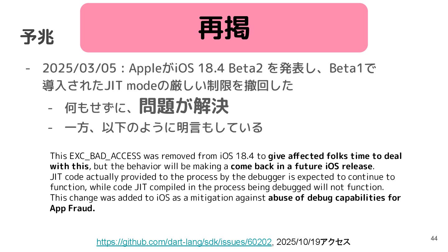 iOS26の発表直後、FlutterのHot reloadが実機では動作しない問題が発生し、アプリ開発者は窮地に立たされまさした。