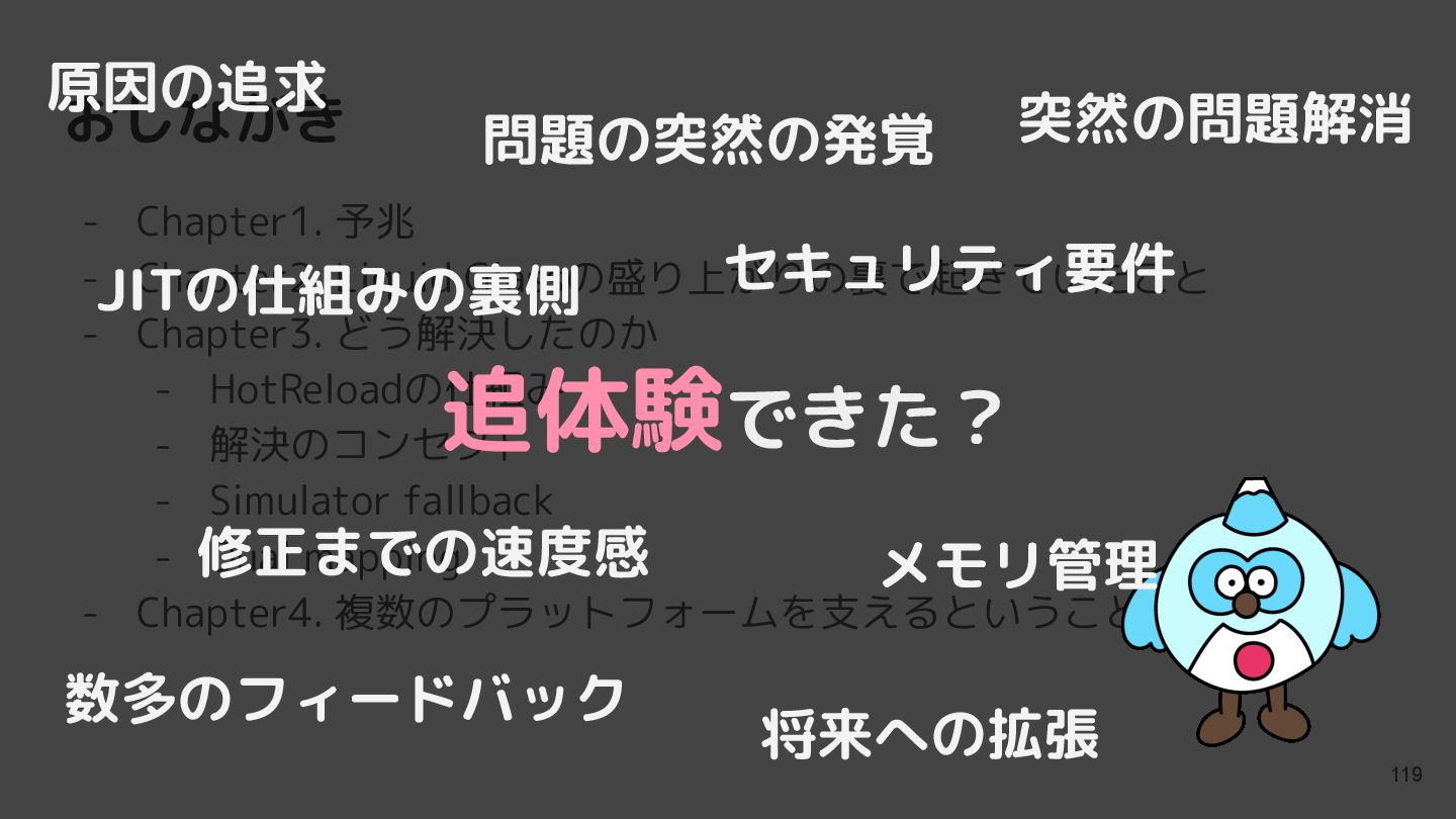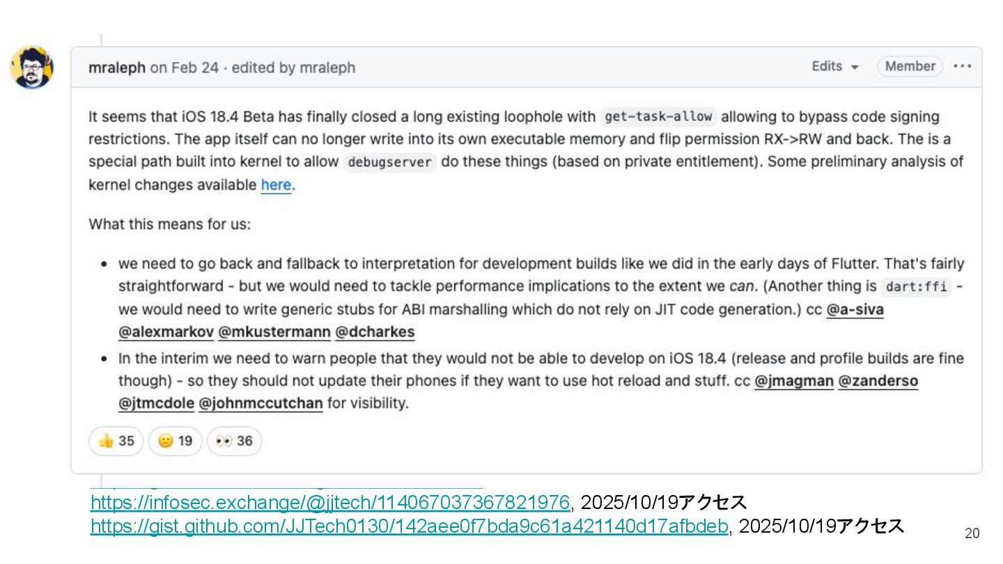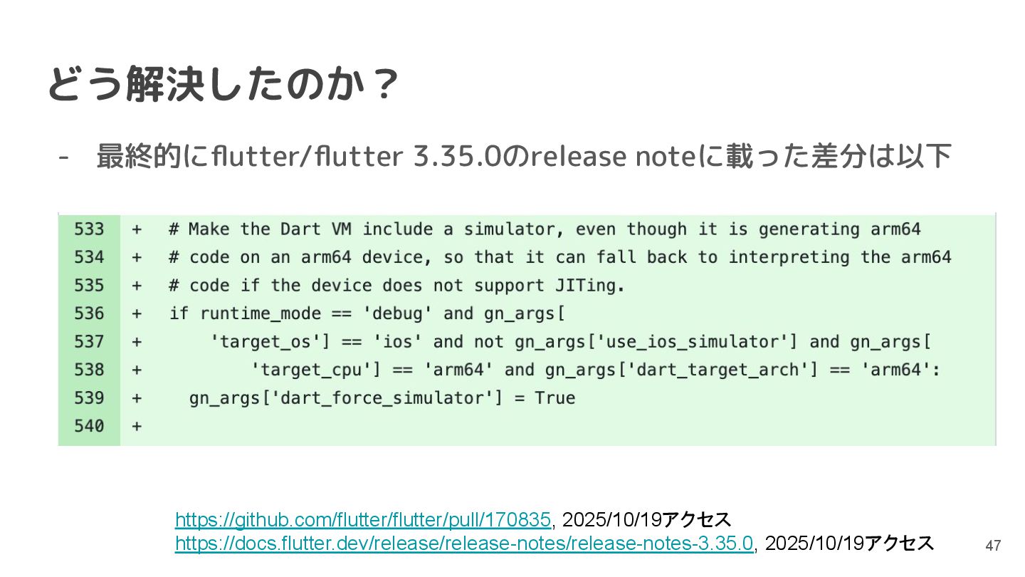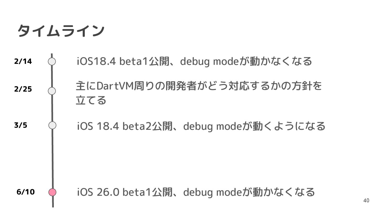 この問題は現代のOSのセキュリティ制約とJITコンパイラが深く関わっています。この課題にどう向き合い、どう解決していったのかを時系列で振り返りましょう。この解決の過程を振り返ることで、フレームワークへの理解が更に進み、FlutterのコアであるHot reload技術についてより深い知見を得ることができます。