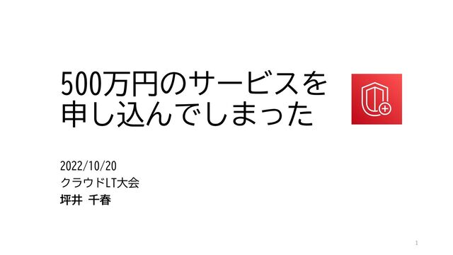 500万円のサービスを 申し込んでしまった 2022/10/20 クラウドLT大会 坪井 千春 1