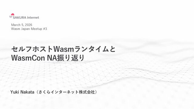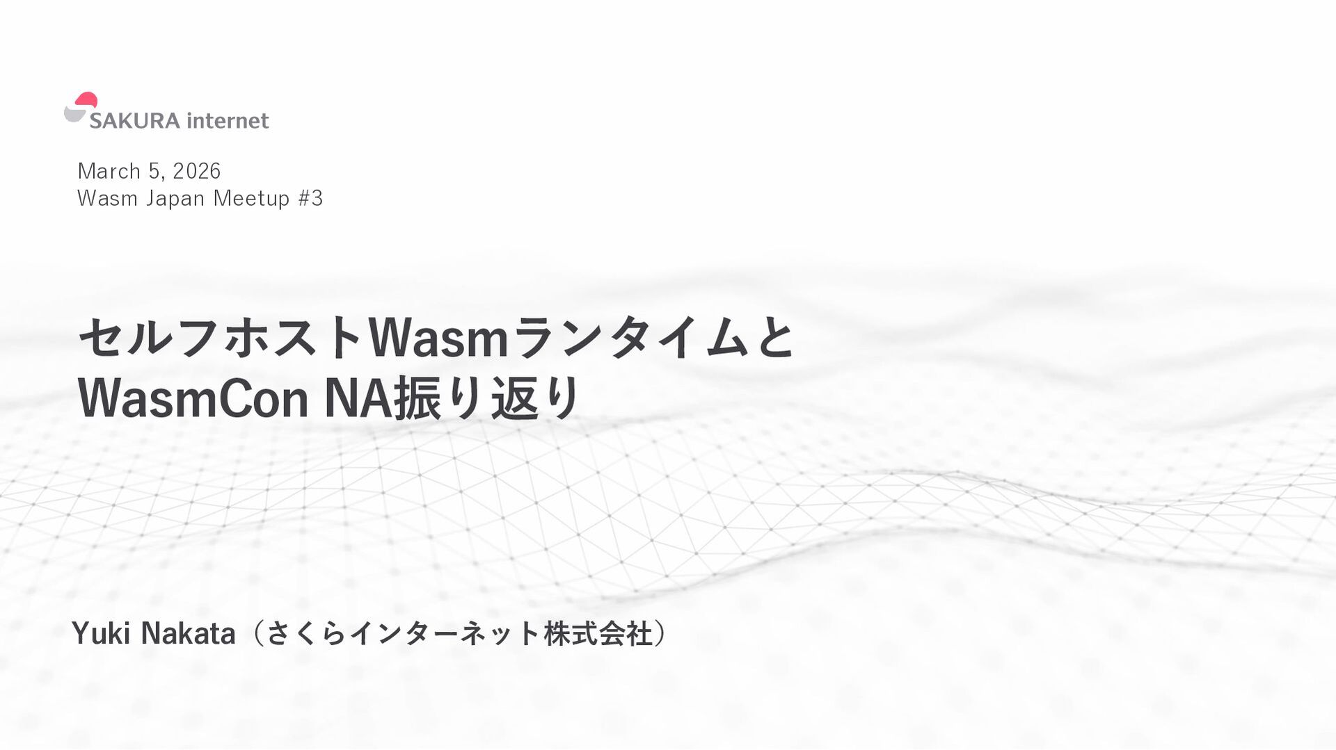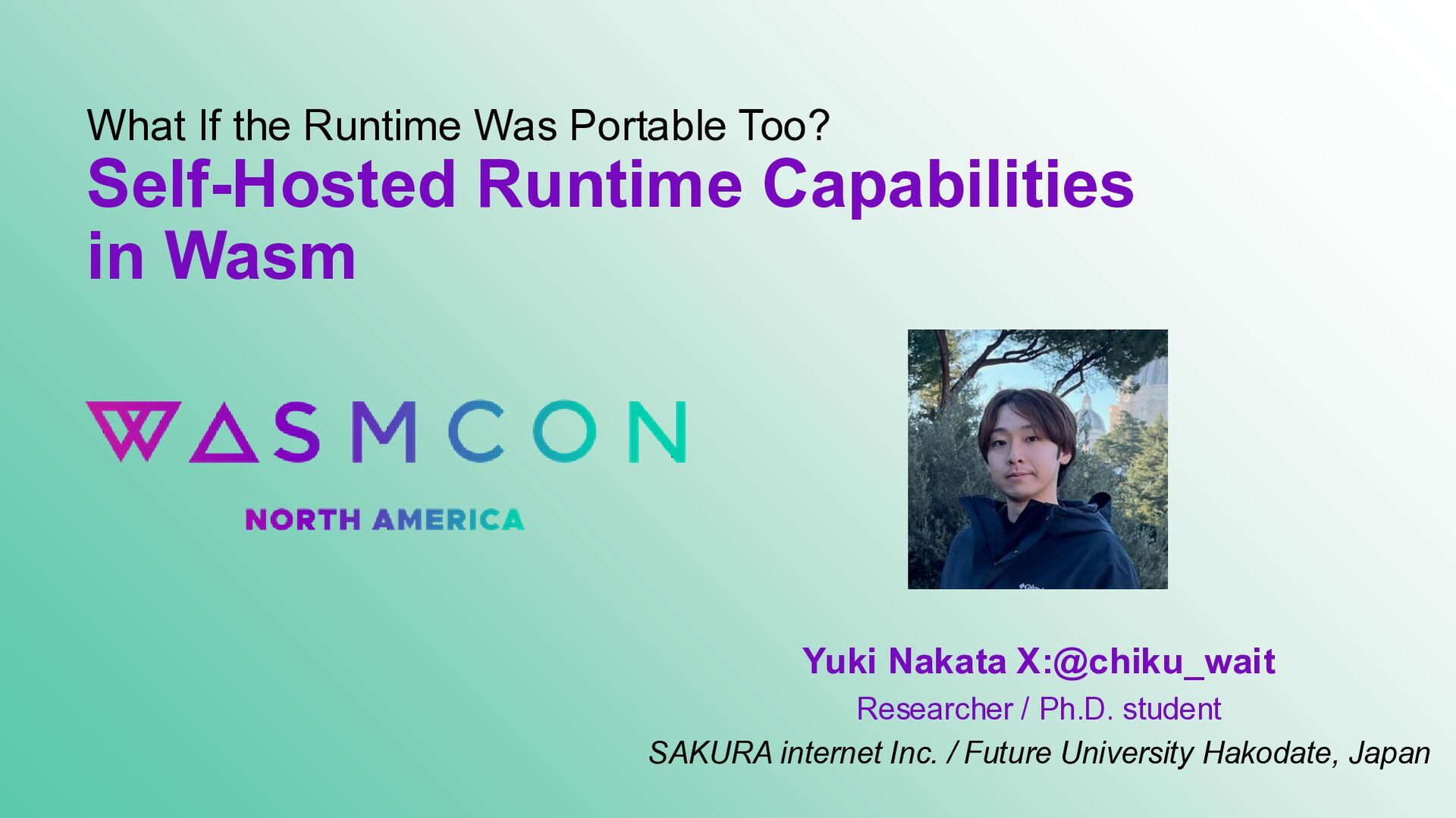in Wasm Yuki Nakata X:@chiku_wait Researcher / Ph.D. student SAKURA internet Inc. / Future University Hakodate, Japan
