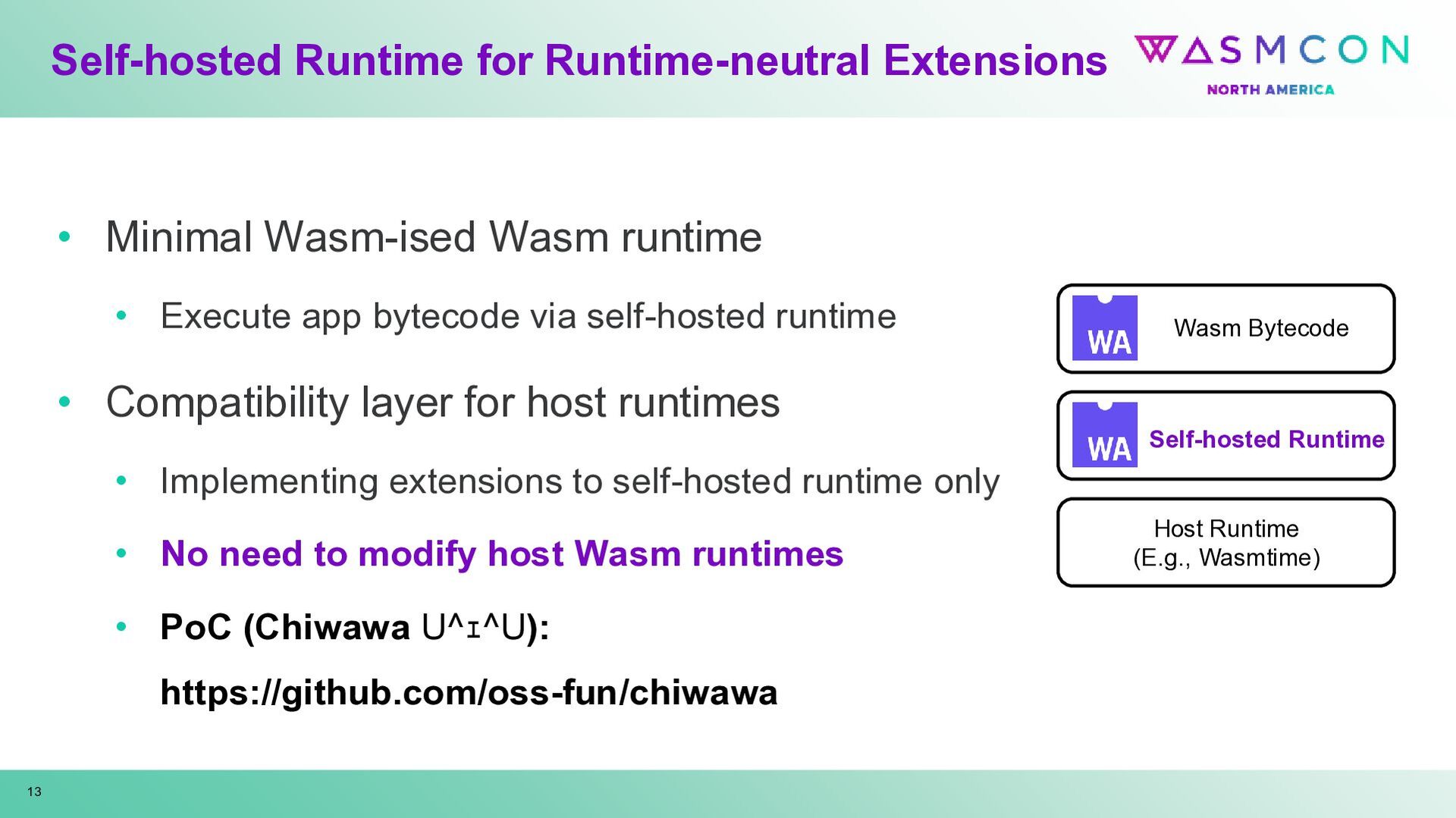 10. 13 Self-hosted Runtime for Runtime-neutral Extensions • Minimal Wasm-ised Wasm