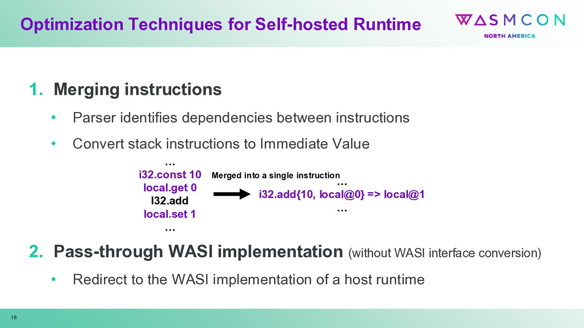 15. 18 Optimization Techniques for Self-hosted Runtime 1. Merging instructions •