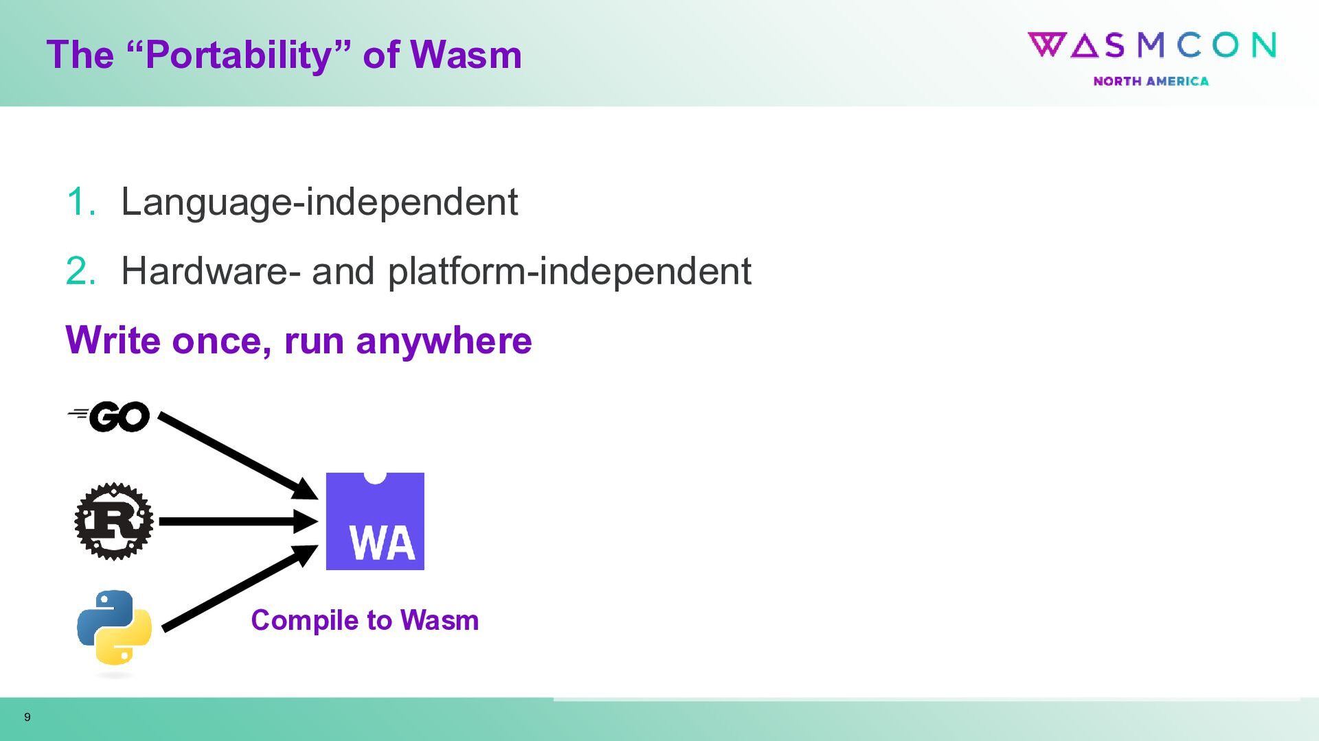 6. 9 The “Portability” of Wasm 1. Language-independent 2. Hardware- and