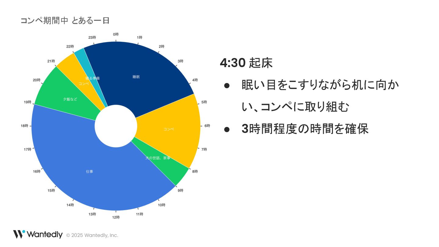 © 2025 Wantedly, Inc. コンペ期間中 とある一日 4:30 起床 • 眠い目をこすりながら机に向か