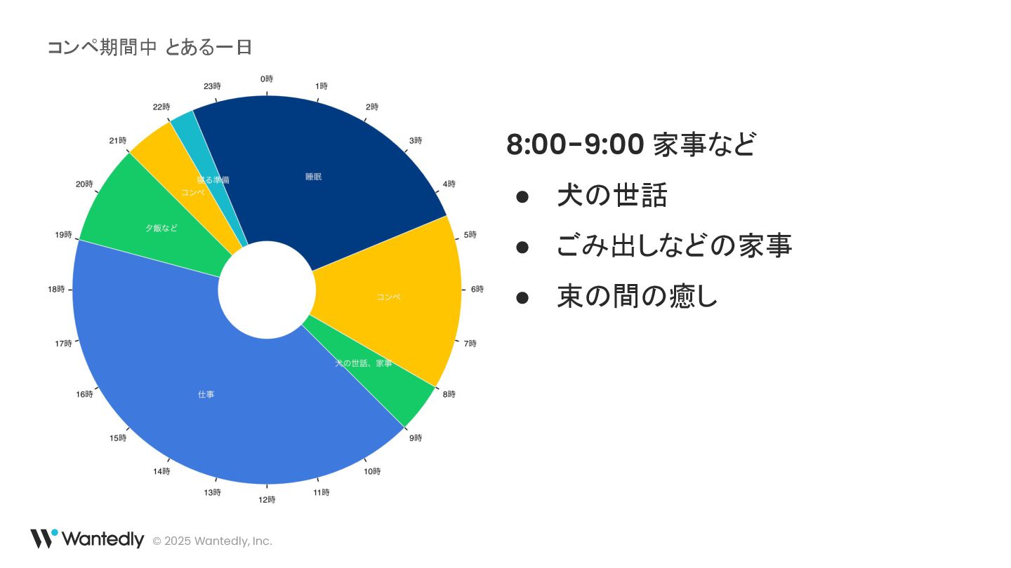 © 2025 Wantedly, Inc. コンペ期間中 とある一日 8:00-9:00 家事など • 犬の世話
