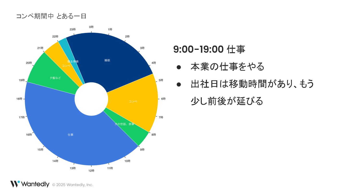© 2025 Wantedly, Inc. コンペ期間中 とある一日 9:00-19:00 仕事 • 本業の仕事をやる
