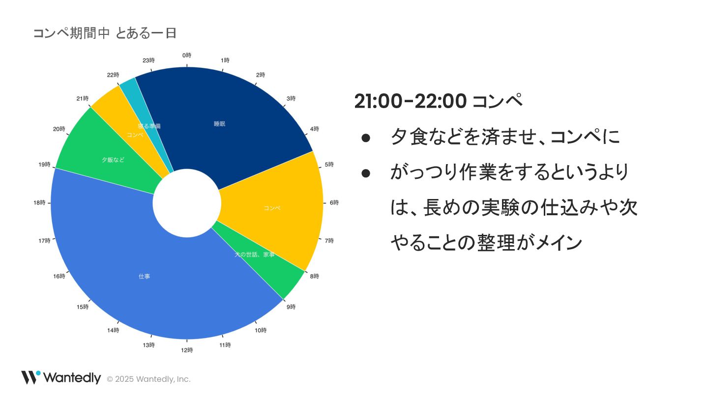 © 2025 Wantedly, Inc. コンペ期間中 とある一日 21:00-22:00 コンペ • 夕食などを済ませ、コンペに
