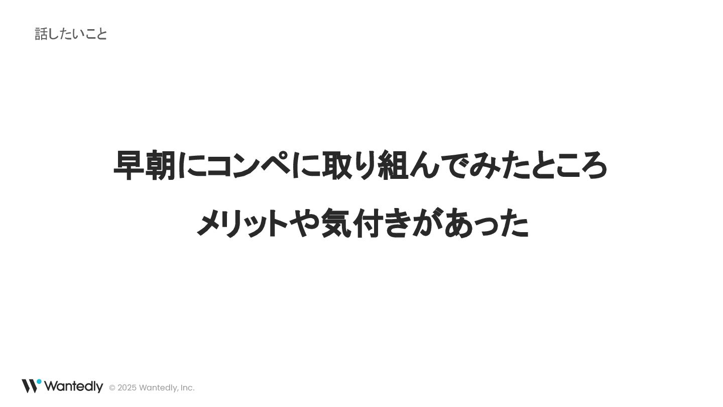 © 2025 Wantedly, Inc. 話したいこと 早朝にコンペに取り組んでみたところ メリットや気付きがあった