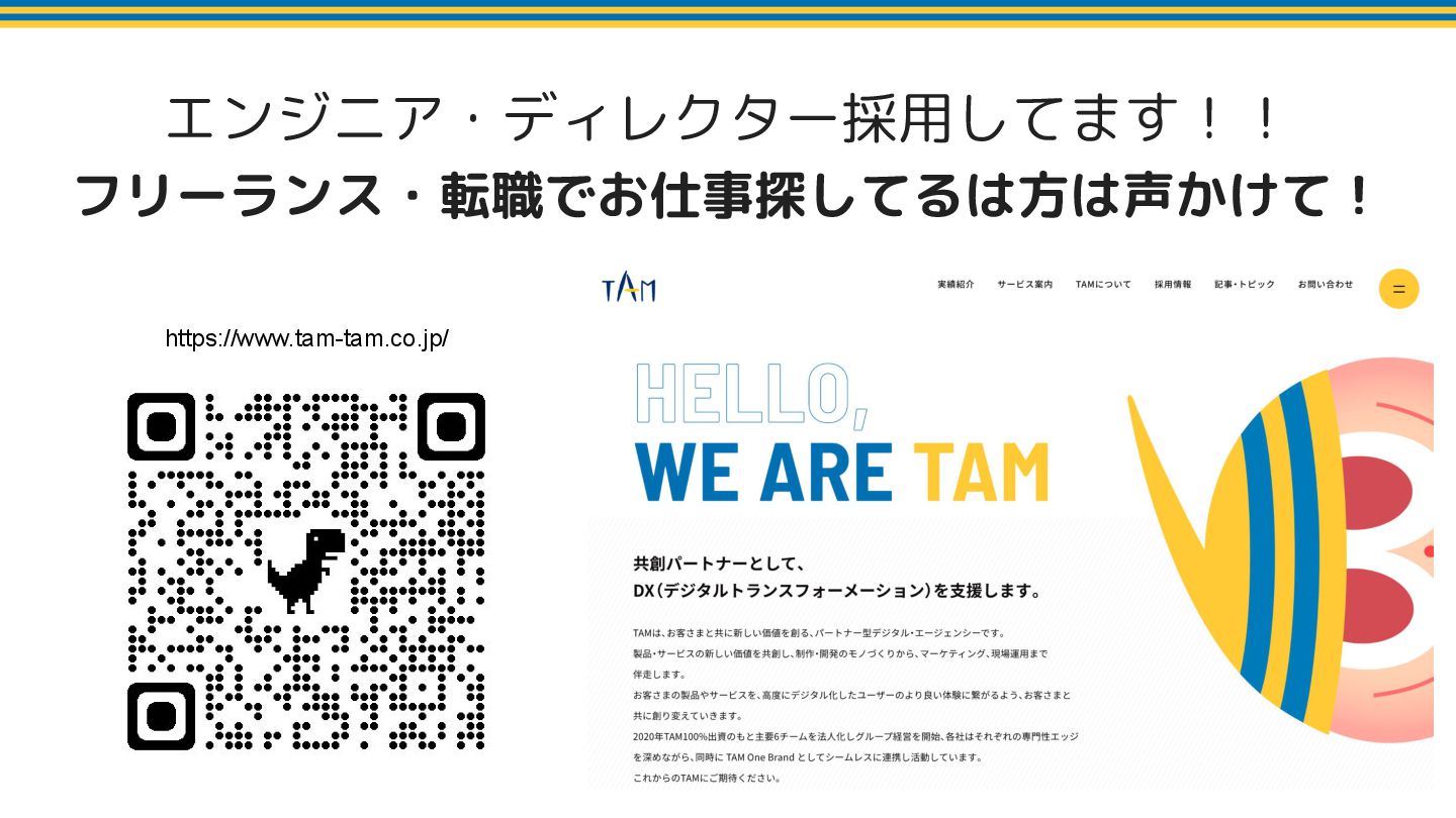 https://www.tam-tam.co.jp/ エンジニア・ディレクター採用してます!! フリーランス・転職でお仕事探してるは方は声かけて!