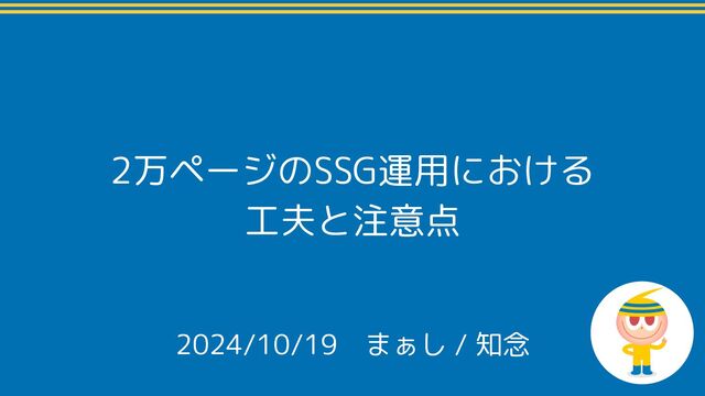 SSG(Static Site Generation)で80分かかっていたbuildを15分まで縮め、現在2万ページの生成を25分で運用しています。 Build時間の削減とSSGならではの課題を共有しています。