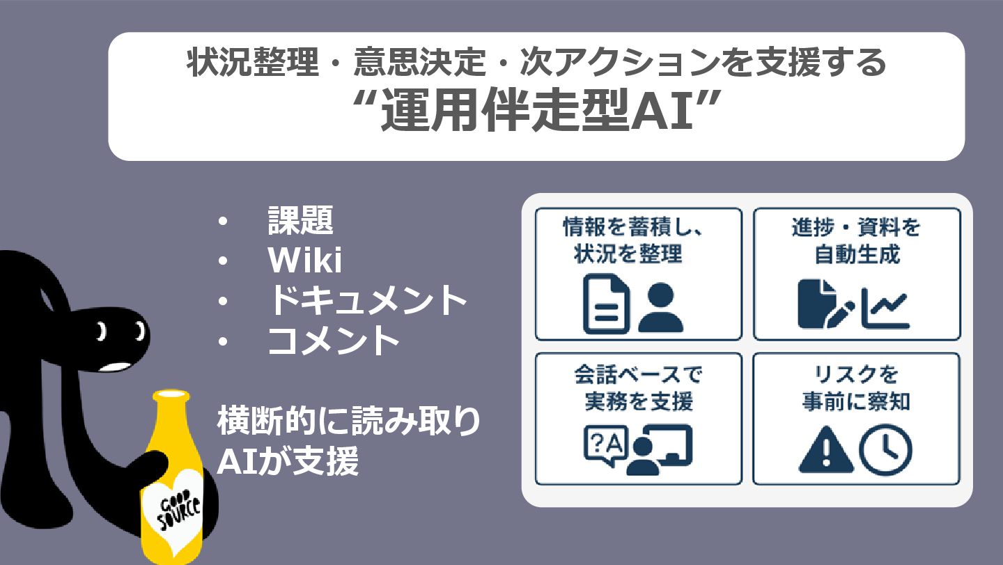 状況整理・意思決定・次アクションを支援する “運用伴走型AI” • 課題 • Wiki • ドキュメント • コメント