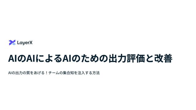 AIのAIによるAIのための出力評価と改善