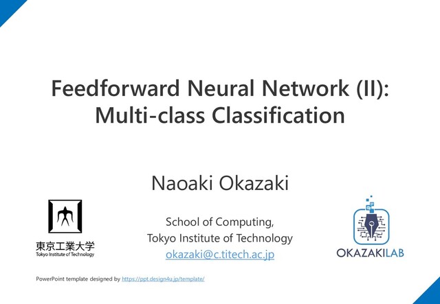 multi-class classification Assign a weight vector for every category Extend Perceptron algorithm to multi-class classification Extend sigmoid function to softmax function Again, automatic differentiation is useful for SGD training ReLU is a popular activation function for internal layers Dropout realizes model ensembling and averaging in a simple way 1