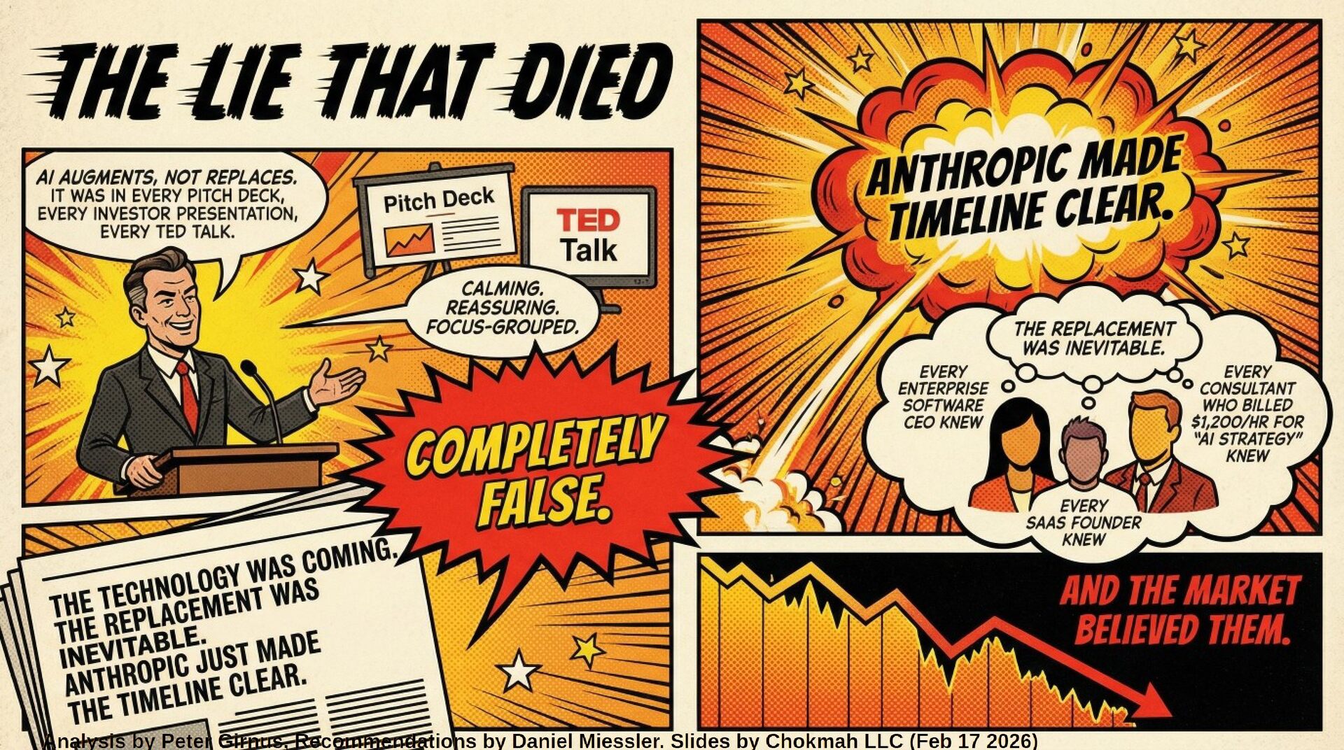 The Core Revelation The enterprise software industry’s mantra—"AI augments, not replaces"—was revealed as a calculated delay tactic. Executives privately knew replacement was inevitable while publicly soothing markets to protect exit liquidity. Anthropic’s move made the timeline undeniable: the technology to replace expensive knowledge workers is not coming; it is here, open-source, and virtually free.