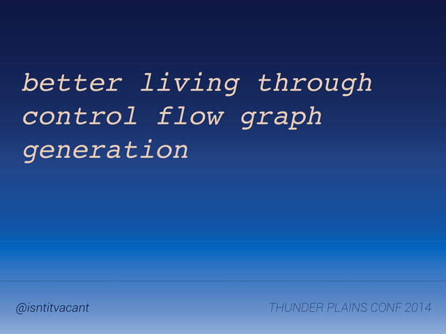 also do some neat mad-science-y stuff: ! * diffing CFGs — did that commit add a new exception edge to the program? * taint checking * if the IR is advanced enough, we could project JS into different languages.