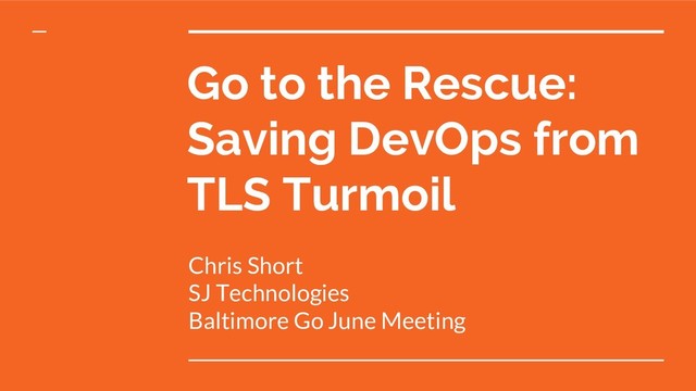Baltimore Go June Meeting - Go to the Rescue: Saving DevOps from TLS Turmoil