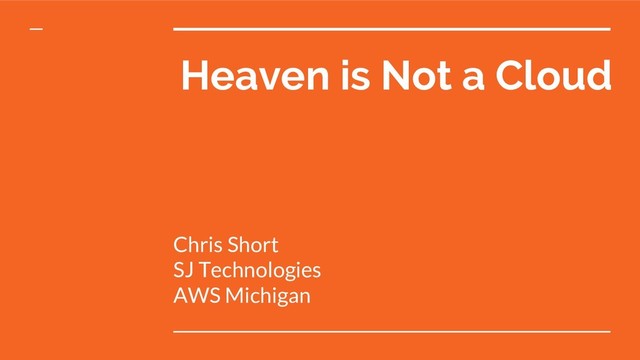 moving to? ➔ Definition wtf is cloud? ➔ Build vs. Buy Which is cheaper better? ➔ Timeline How much time do you have? @ChrisShort devopsish.com @ChrisShort devopsish.com