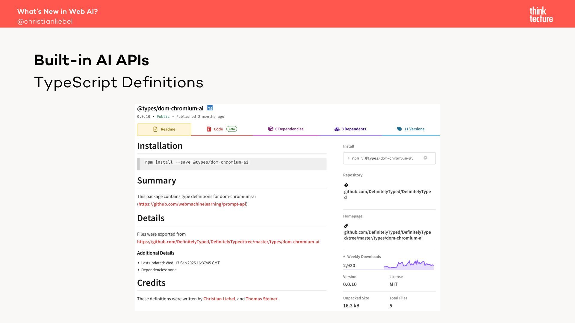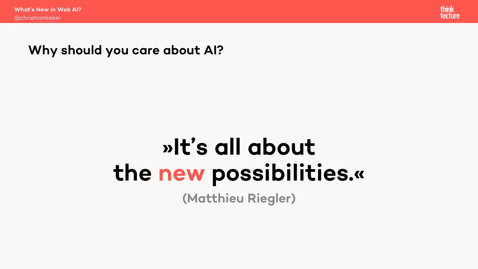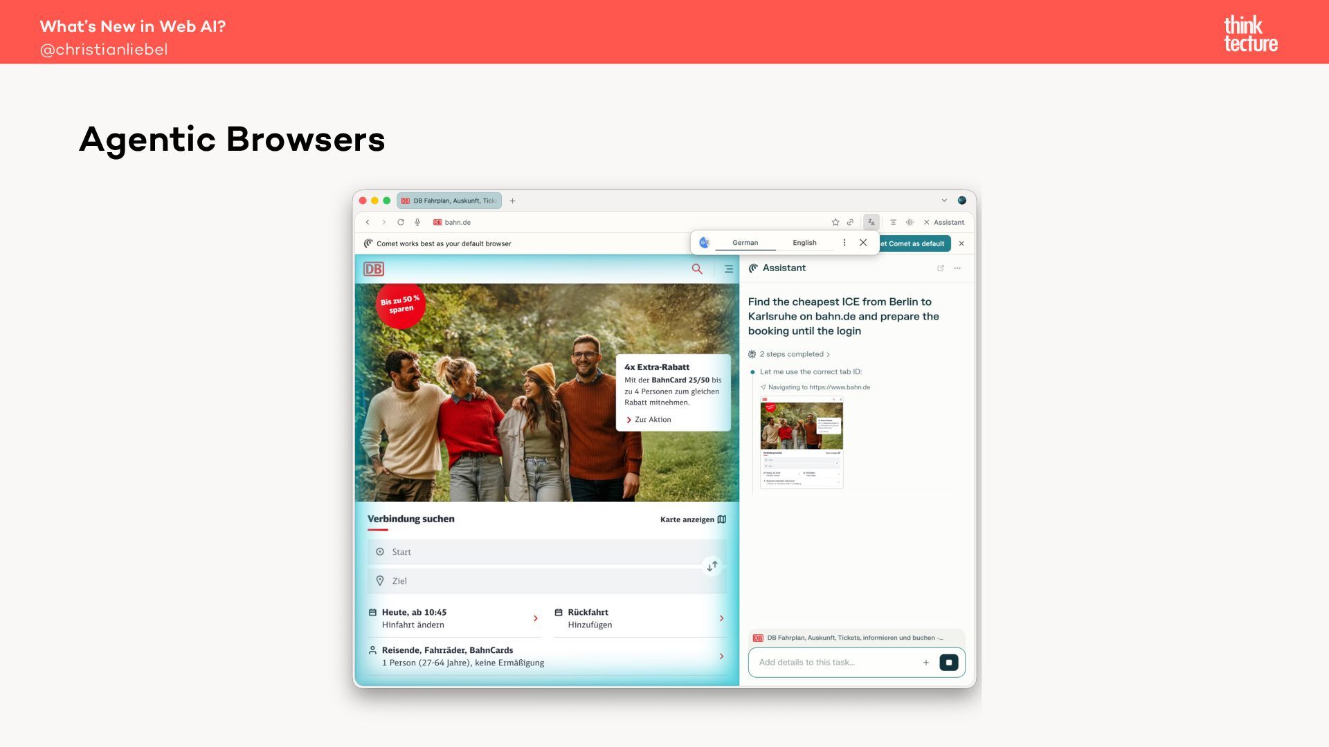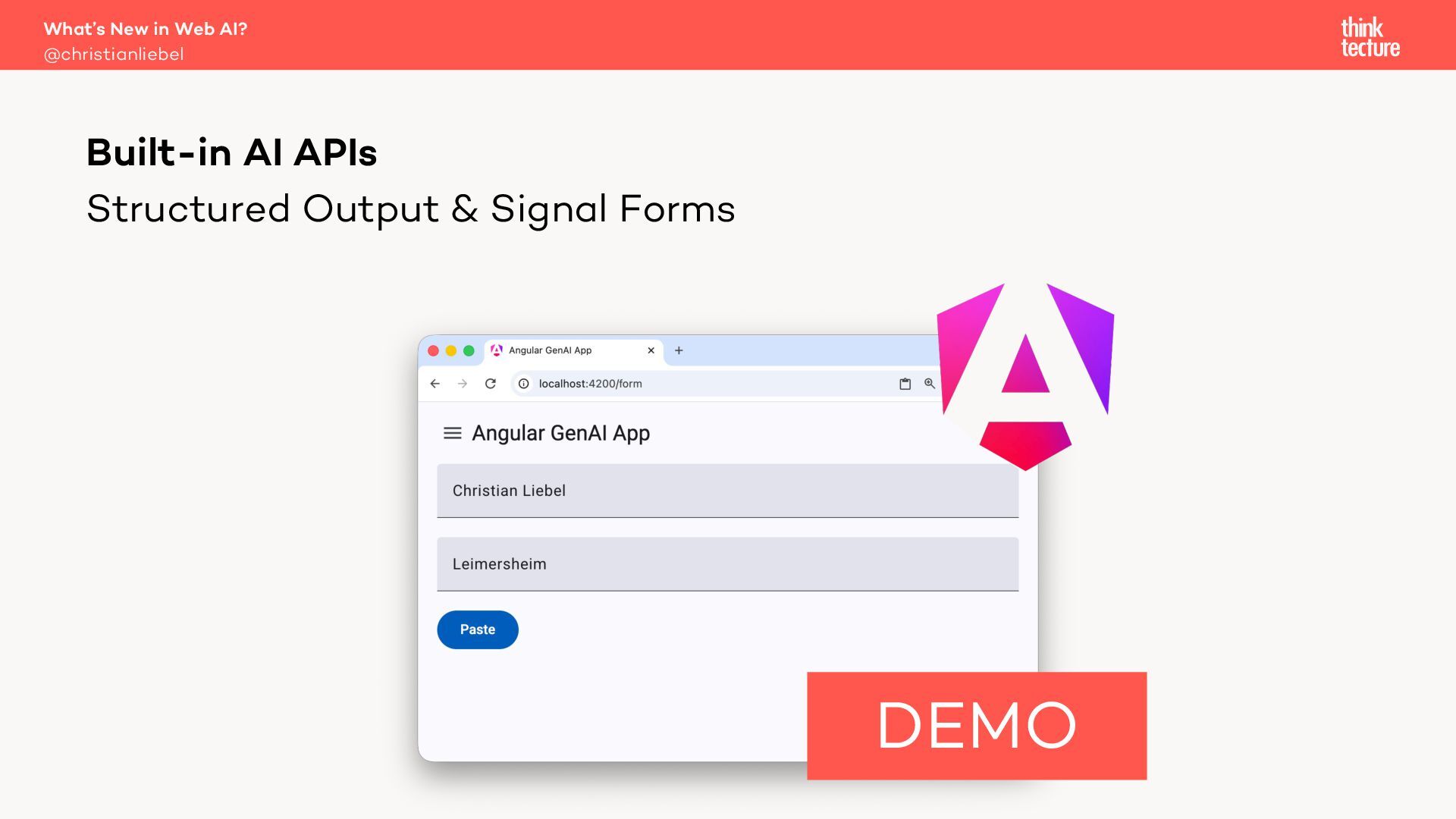 Generative AI is becoming a key part of modern software architecture, and its presence in web apps is growing. As demand increases, vendors and specification authors are working to make AI capabilities more accessible and integrated into the web platform. In this session, Christian Liebel—W3C TAG Associate and member of the WebML Working Group—will share what's cooking behind the scenes in Web AI. You'll get an update on the latest advancements in the WebNN API, Chromium's Built-in AI APIs, emerging developer tools, and the real-world challenges that browser vendors and standards authors are navigating to bring AI to the web.