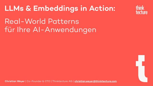 Generative AI und menschliche Sprache als zentrale Bausteine Ihrer Software – jenseits des Buzzword-Bingos. Begleiten Sie Christian Weyer in dieser Session bei der Erkundung erprobter Patterns und Lösungen für die nahtlose Integration von Language- und Embedding-Modellen in moderne Softwarearchitekturen. Kernthemen wie Semantic Routing, Retrieval-Augmented Generation, Structured Output und Observability werden im Einklang anhand praxisnaher Beispiele in einem End-to-End-System mit mehreren Services und Client-Anwendungen demonstriert. Entwickler und Architekten erhalten wertvolle Einblicke, wie sie natürlichsprachliche Benutzerschnittstellen in ihren Projekten zum Leben erwecken können.