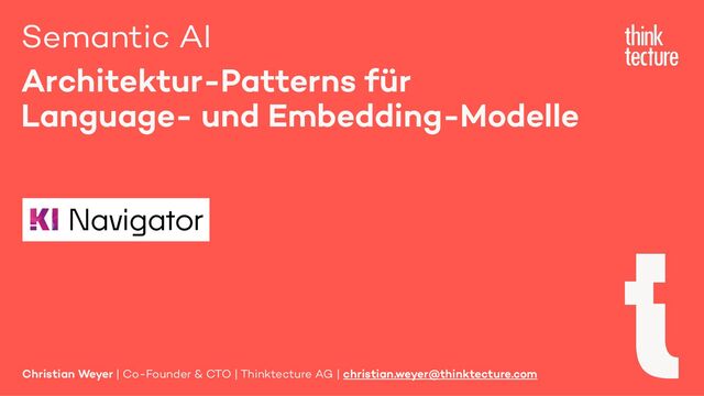 Semantic AI als Erweiterung von Generative AI kann der Schlüssel zur Integration von KI in eigene Lösungen sein. In diesem Vortrag zeigt Christian Weyer praxisnahe Architektur-Patterns und Ansätze für die Nutzung von Large und Small Language Models wie GPT oder Llama sowie Embedding-Modellen in modernen Software-Architekturen. Wichtige Konzepte wie Semantic Routing, Light-weight RAG, Structured Output und Observability werden anhand eines End-to-End-Systems mit mehreren Services und Client-Anwendungen demonstriert. Entwickler und Architekten erhalten einen pragmatischen Überblick über die mögliche Umsetzung in eigenen Projekten.