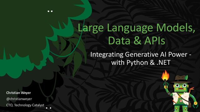 Let's look beyond the ChatGPT hype! In this session, Christian delves into the world of Large Language Models (LLMs), data, and APIs, focusing on how you can meaningfully integrate AI functionality into your applications. We will explore pragmatic scenarios and use cases that demonstrate the potential of LLMs (such as GPT or Llama) and discuss how AI techniques can be incorporated into existing architectures. Participants will gain initial insights into LangChain as a Python toolkit and Semantic Kernel as a .NET-based SDK. Additionally, we will address the consideration of not only using closed-source systems (like OpenAI) but also taking open-source options into account to meet diverse requirements. Come in and find out!