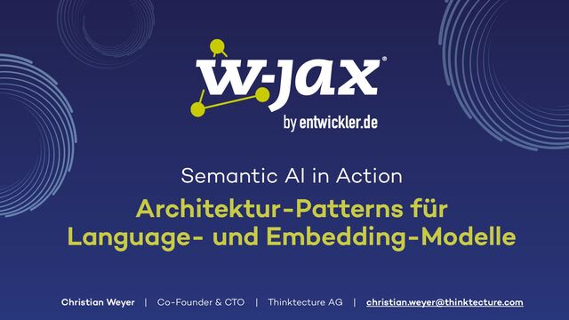 Semantic AI als Weiterentwicklung von Generative AI kann der Schlüssel zur Integration von KI in eigene Lösungen sein. In diesem Vortrag zeigt Christian Weyer praxisnahe Architektur-Patterns und Ansätze für die Nutzung von Large und Small Language Models wie GPT oder Llama sowie Embedding-Modellen in modernen Softwarearchitekturen. Wichtige Konzepte wie Semantic Routing, Semantic Search und RAG, Structured Output und Observability werden anhand eines End-to-End-Systems mit mehreren Services und Clientanwendungen demonstriert. Entwickler und Architekten erhalten einen pragmatischen Überblick über die mögliche Umsetzung in eigenen Projekten.