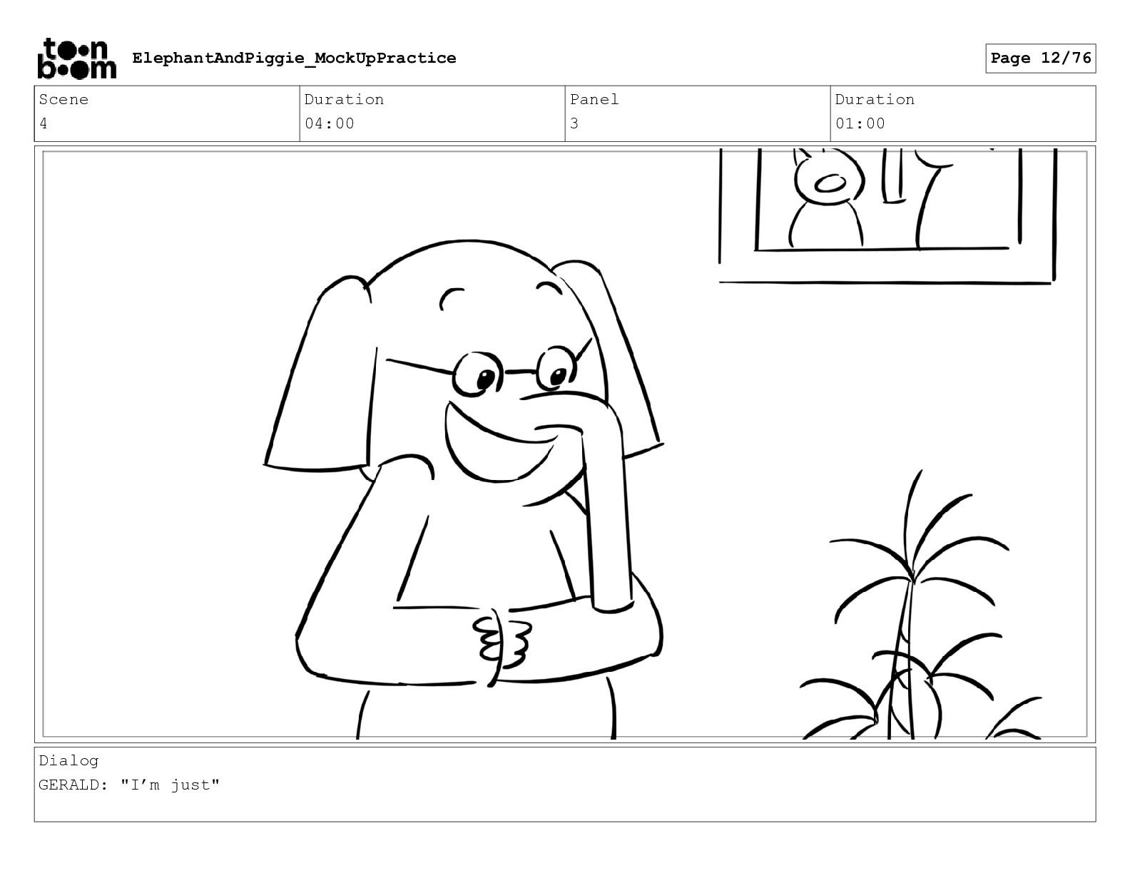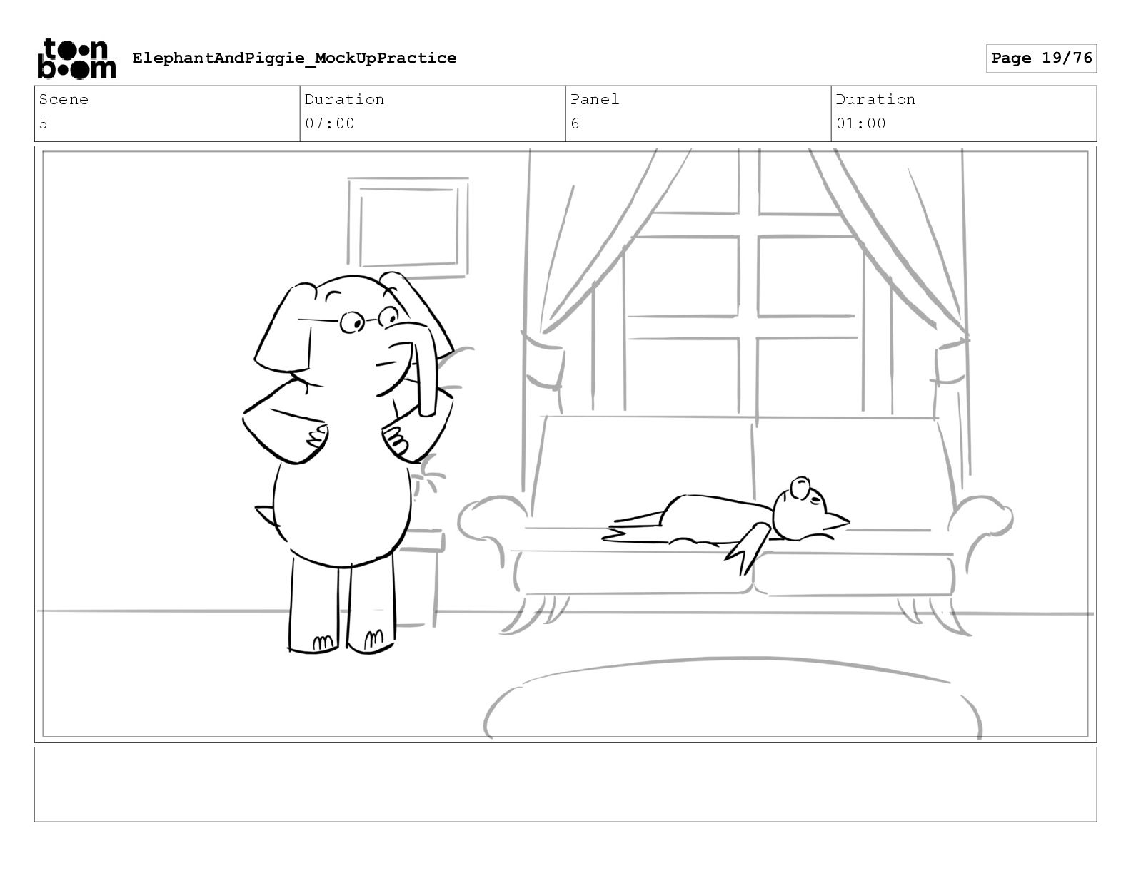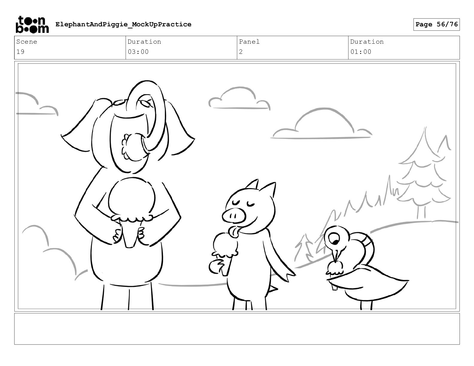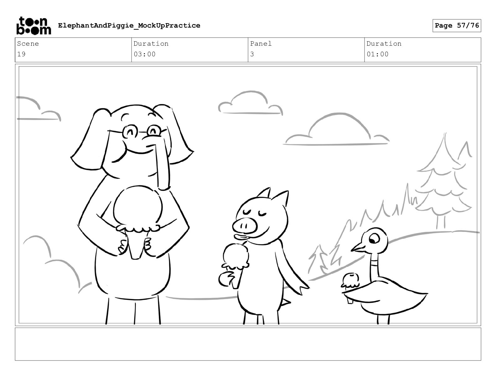 Scene 19 Duration 03:00 Panel 3 Duration 01:00 ElephantAndPiggie_MockUpPractice Page