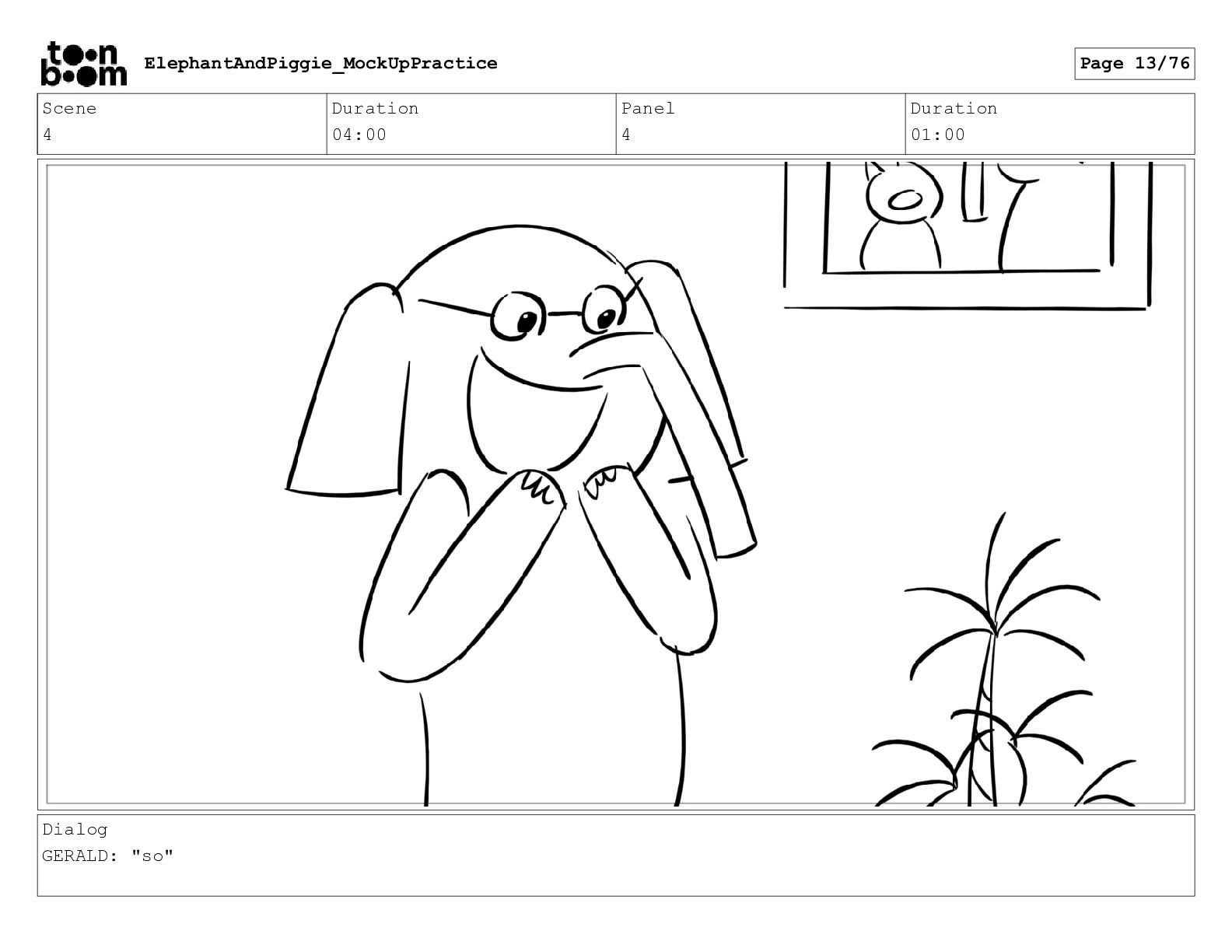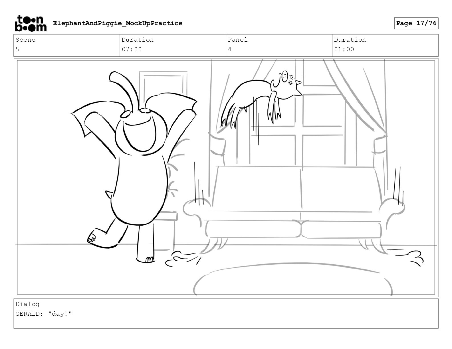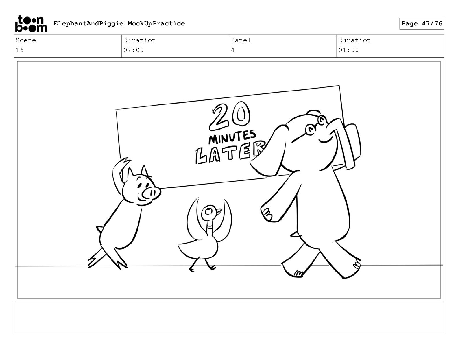 Scene 16 Duration 07:00 Panel 4 Duration 01:00 ElephantAndPiggie_MockUpPractice Page