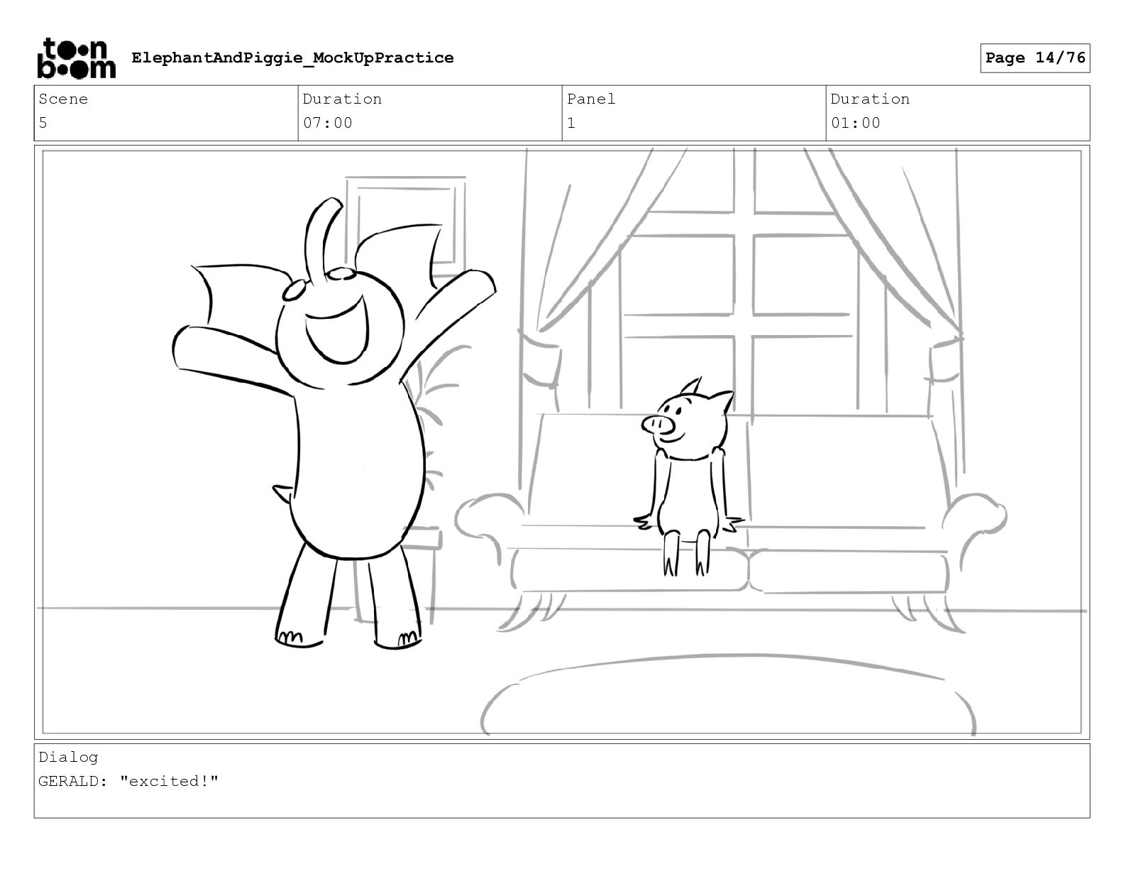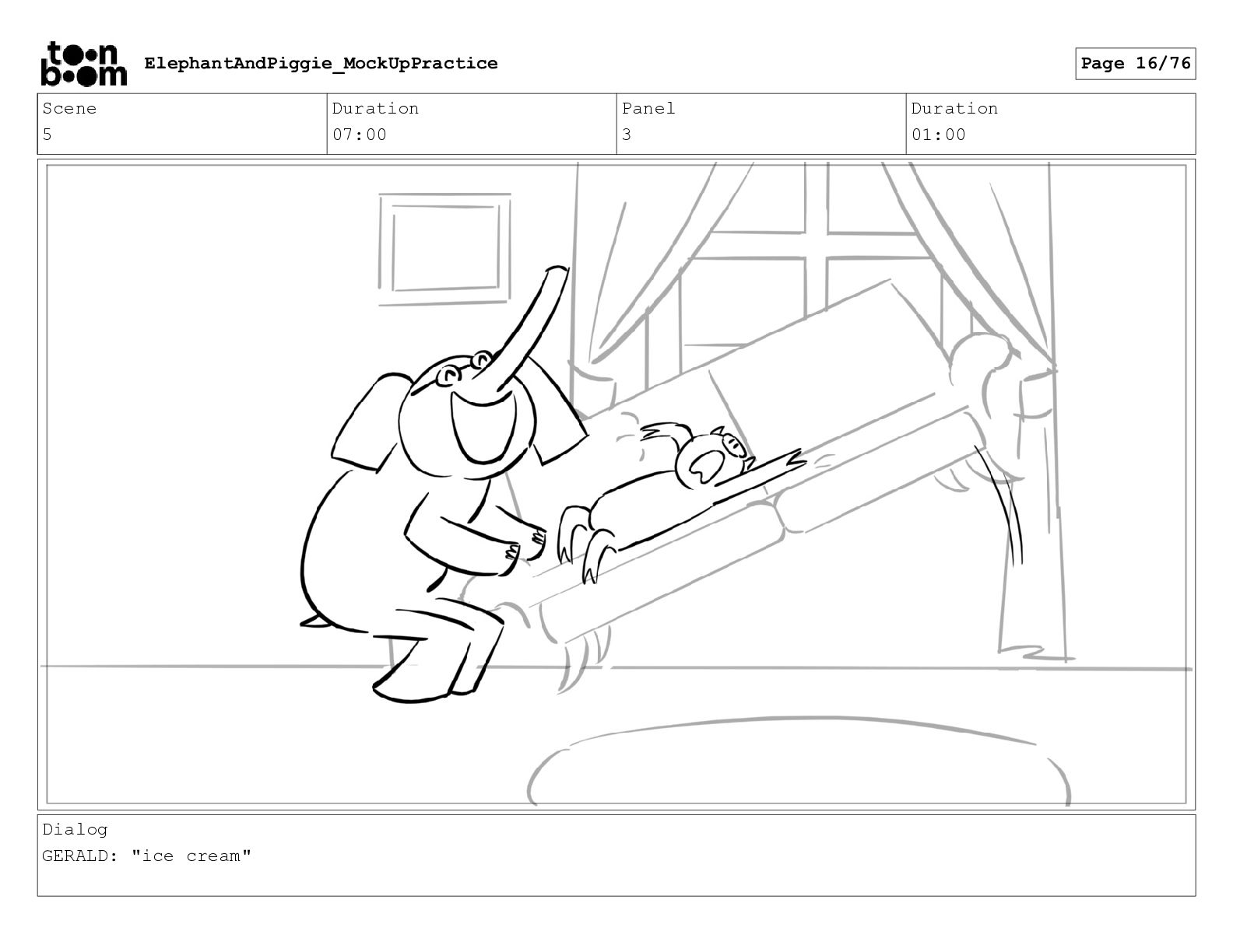 Scene 16 Duration 07:00 Panel 5 Duration 01:00 ElephantAndPiggie_MockUpPractice Page